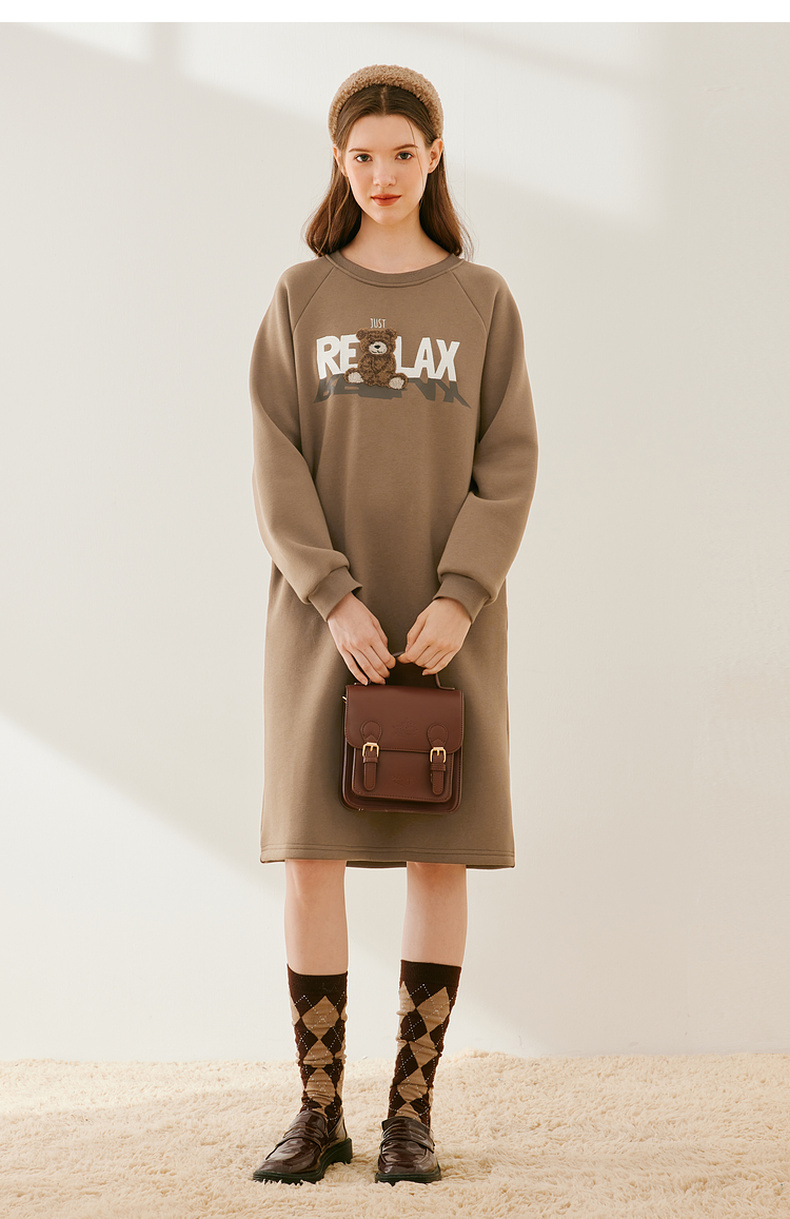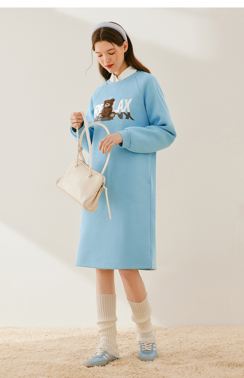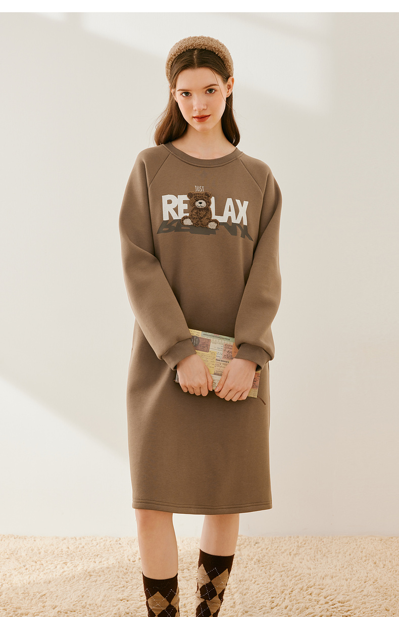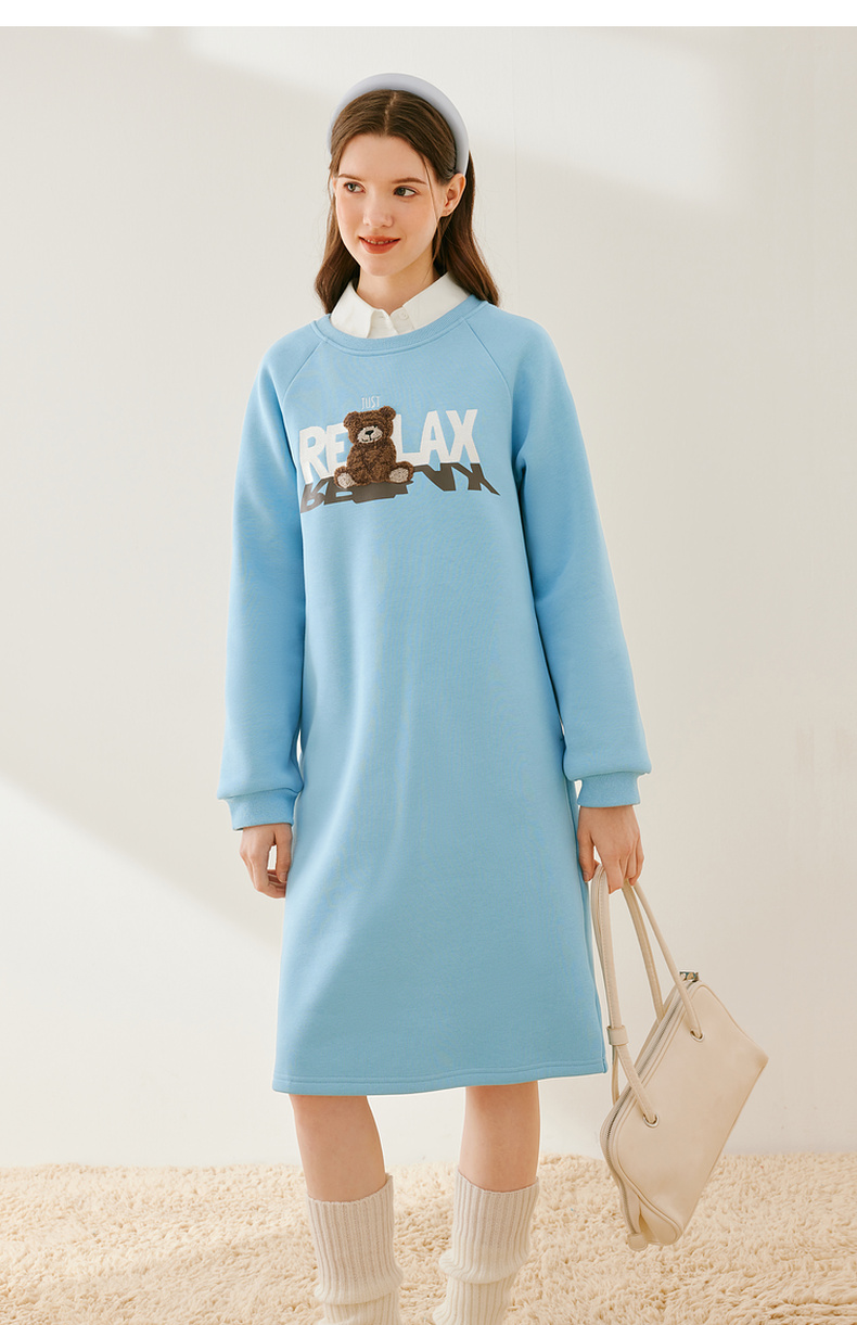 【严选】诗凡黎冬韩系卡通熊图案加绒连衣裙SEB490991