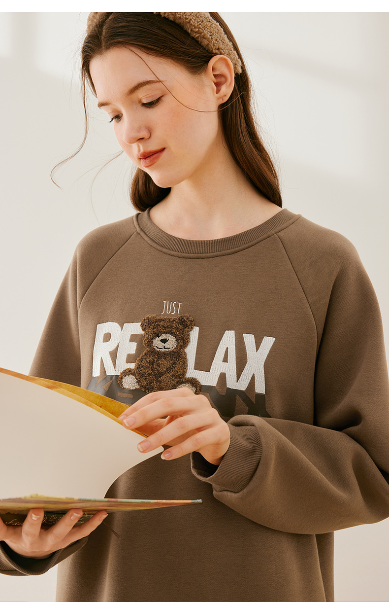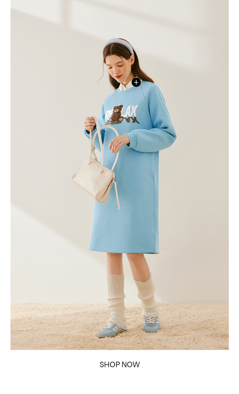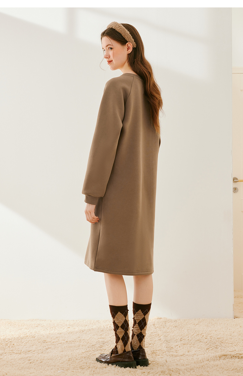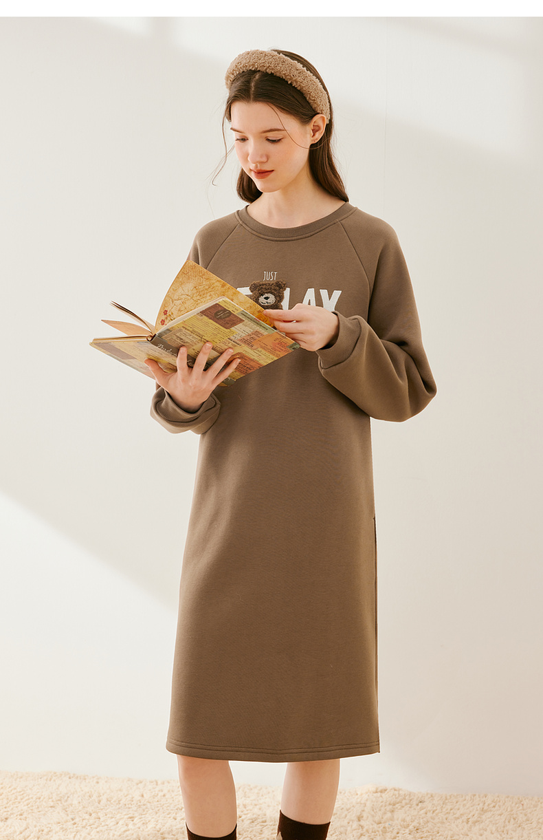 【严选】诗凡黎冬韩系卡通熊图案加绒连衣裙SEB490991