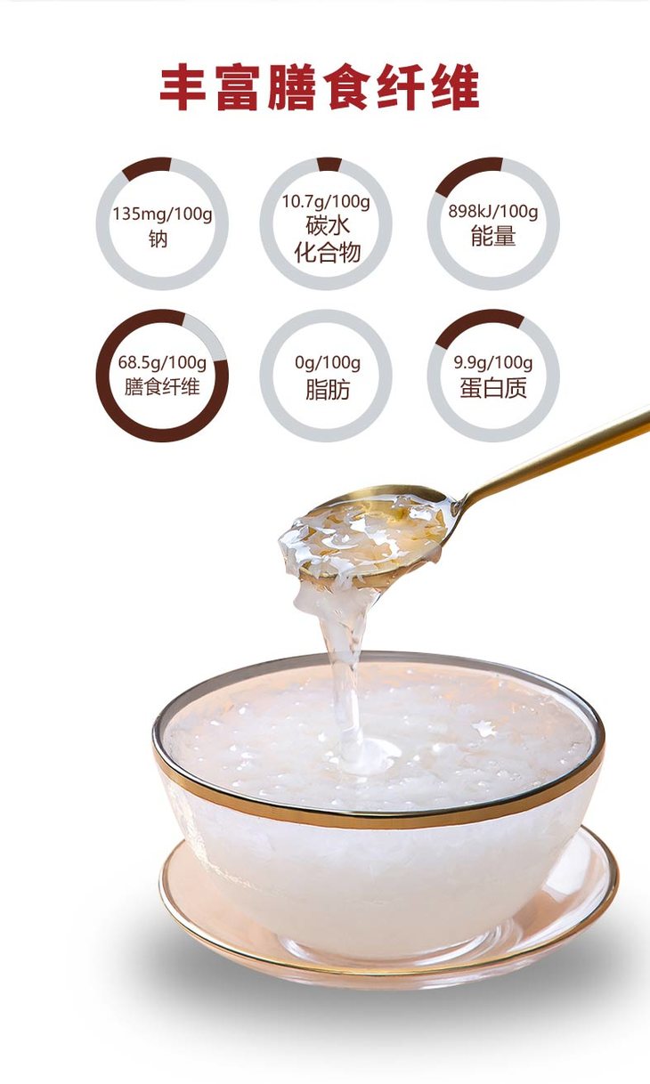 本草银耳需要在0℃-8°C的阴凉干燥处,密封冷藏保存。高温会导致银耳变黄、出胶慢,但不影响食用。开封后建议在30天-40天内食用完。