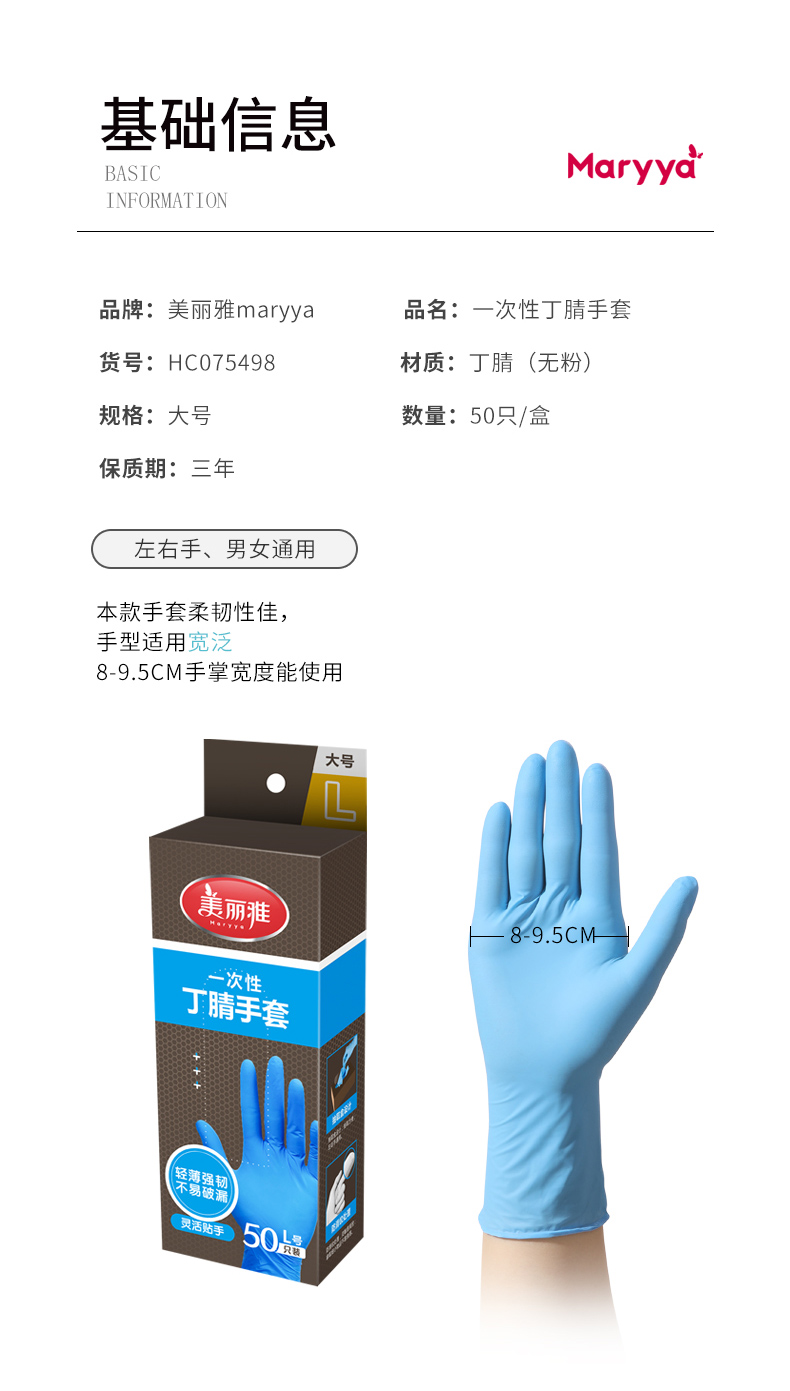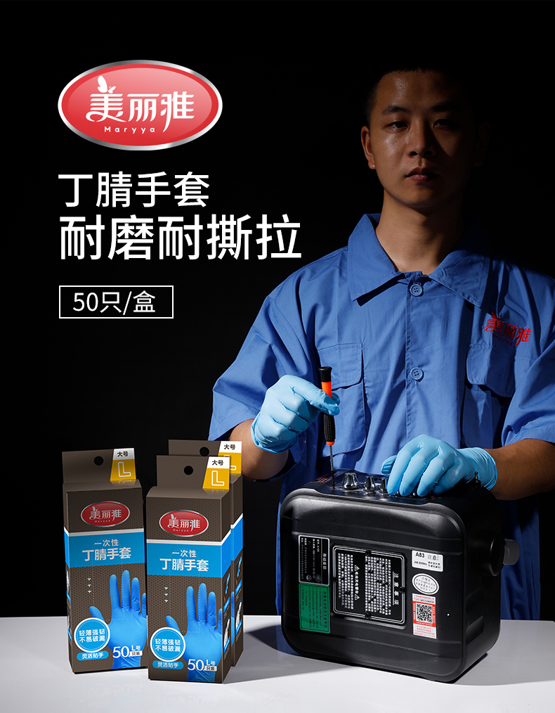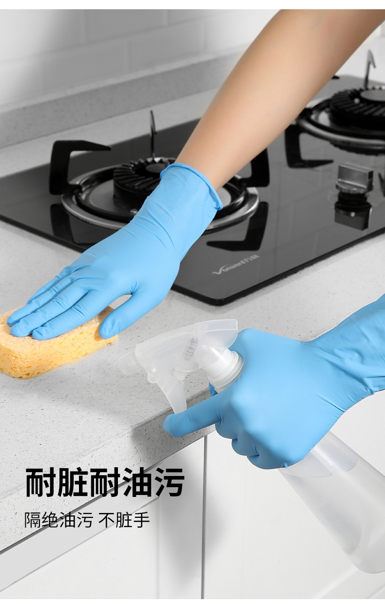 美丽雅一次性丁腈强韧手套加长家务厨房洗碗手套 50只/盒