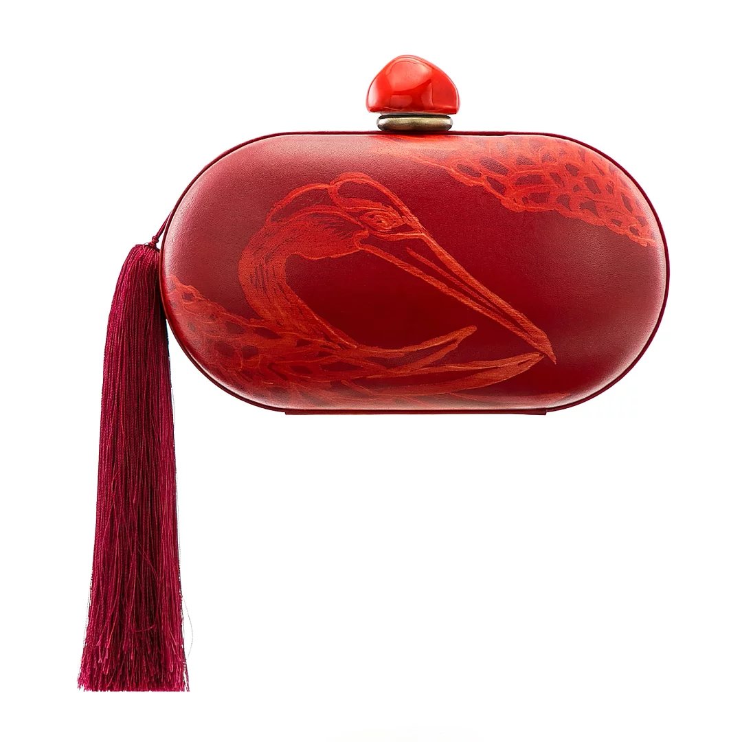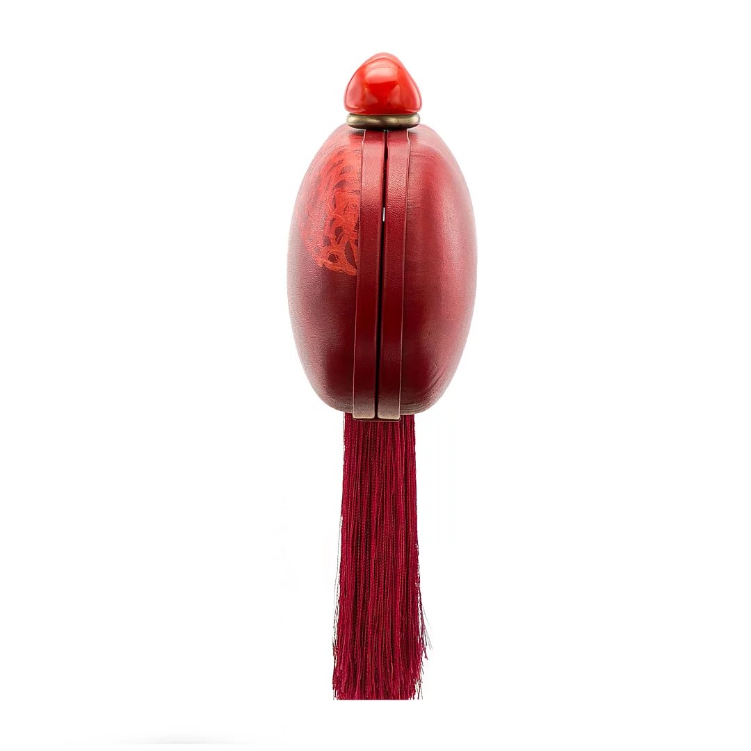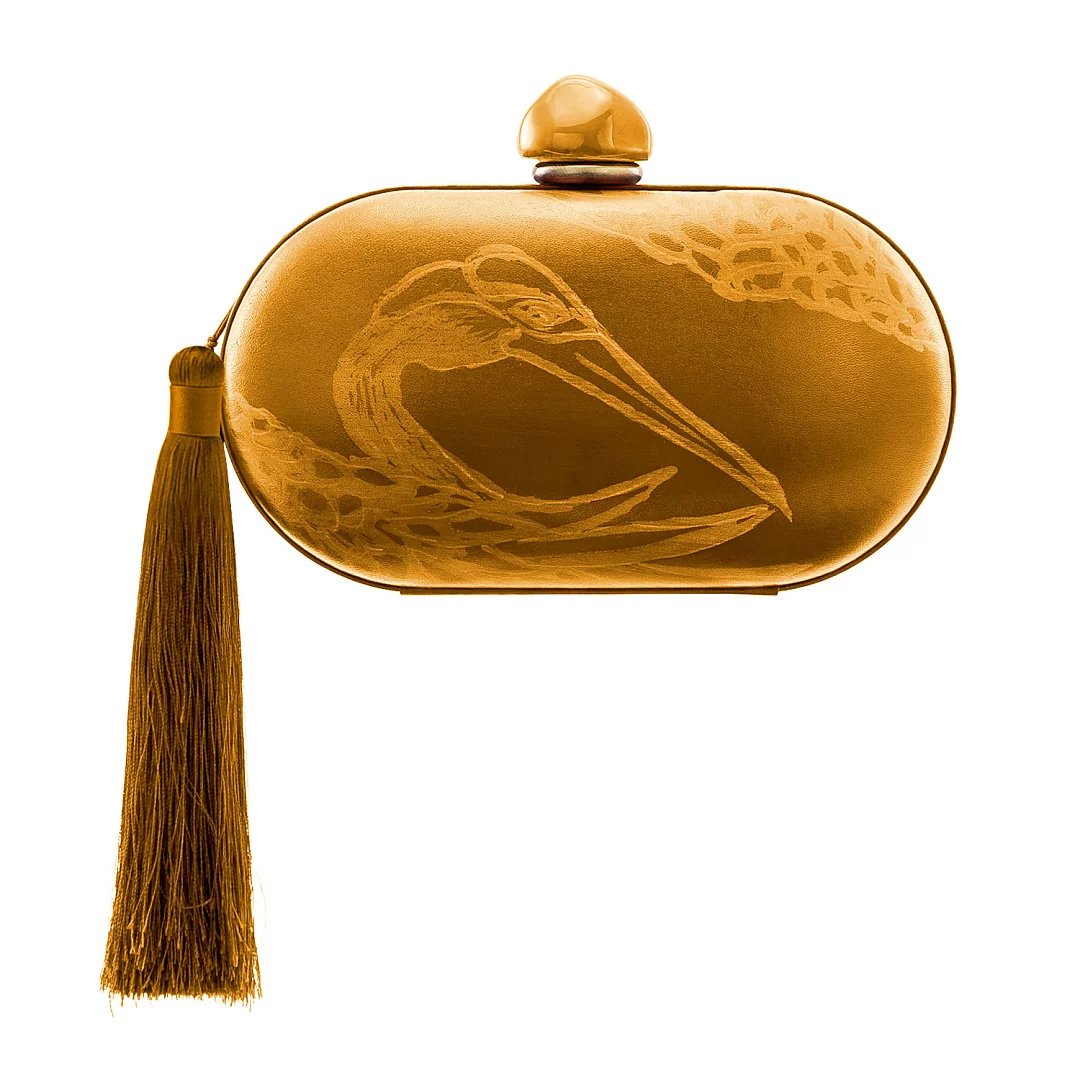 材质:牛皮(牛皮内里) 颜色:沙姜黄、墨蓝、朱红 尺寸:L19*W10.5 *D8cm 采用真皮上手绘、手擦、蜡染,当在寻找材料创作作品的时候,遍寻不着心仪的颜色,我们想到了亲手调配颜料,这组作品,都选用来自意大利的头层植鞣树羔皮,**的植物制革过程,保留了最天然的皮面状态,最佳的吸色效果,再加上每一幅都是艺术家手绘作品,每一只仙鹤都是独一无二的存在!值得一提的是,“皮上手绘蜡染工艺”是熙上团队独创的特殊工艺,体现了品牌孜孜不倦地在皮革领域的突破与创新,加上微妙的后处理,带来艺术又复古的气质,尤其是随着使用习惯、使用时间及使用方式的不同,逐渐养出包浆与痕迹,这才是高端玩家最为着迷之处。 此款晚礼包,运用羊皮手工包裹硬壳设计,玲珑小巧,内里运用羊皮内里,柔软细腻,可轻松容纳随身小物。适合各种时尚聚会晚宴场合,手打真丝流苏摇曳灵动,高贵且轻灵。瓷珠为景德镇手工匠人专属定做,出品极低(出产量),色泽别致,每件都如艺术品般珍贵,顾客享受到独一无二的别致体验。