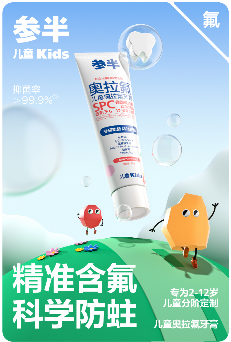 参半儿童奥拉氟牙膏2-6-12岁
