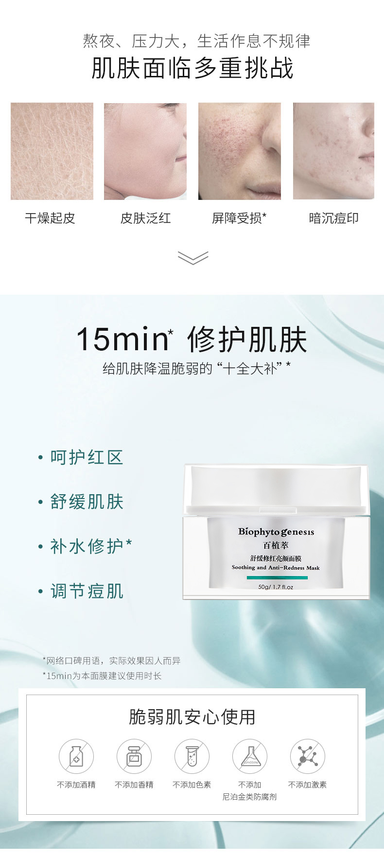 百植萃新品!舒缓修红亮颜积雪草补水涂抹式冰淇淋小绿瓶面膜50g