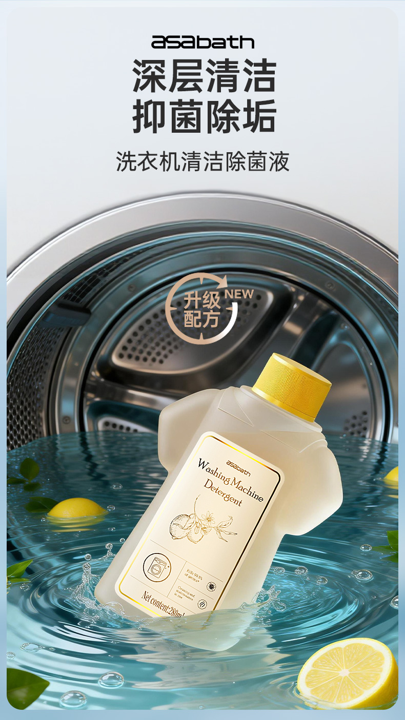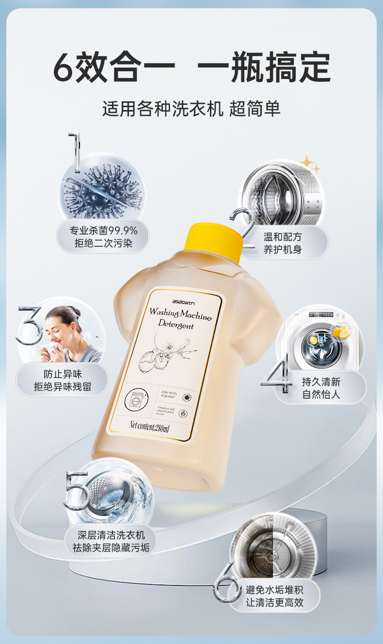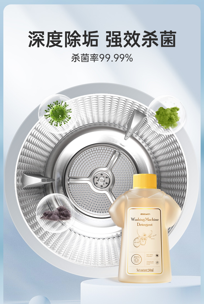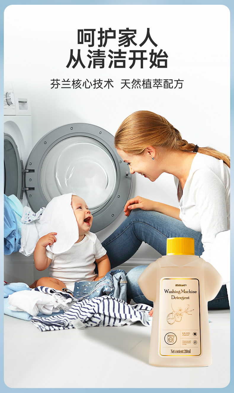 【芬兰百年品牌】asabath洗衣机清洁剂 一键自洁 排出10年脏水 除菌+去味+清洁+护机 抗菌不伤机 一瓶多用 280ml/瓶