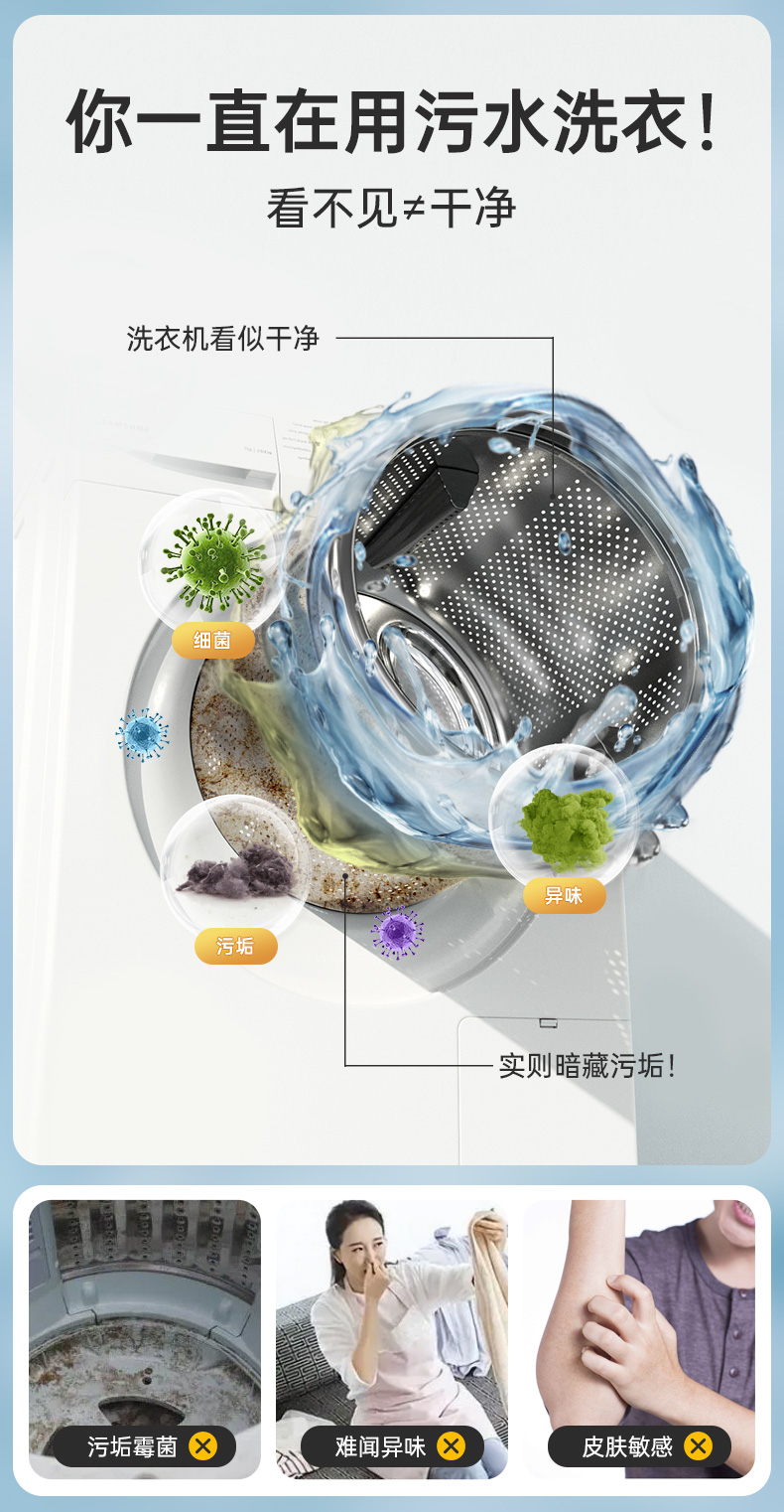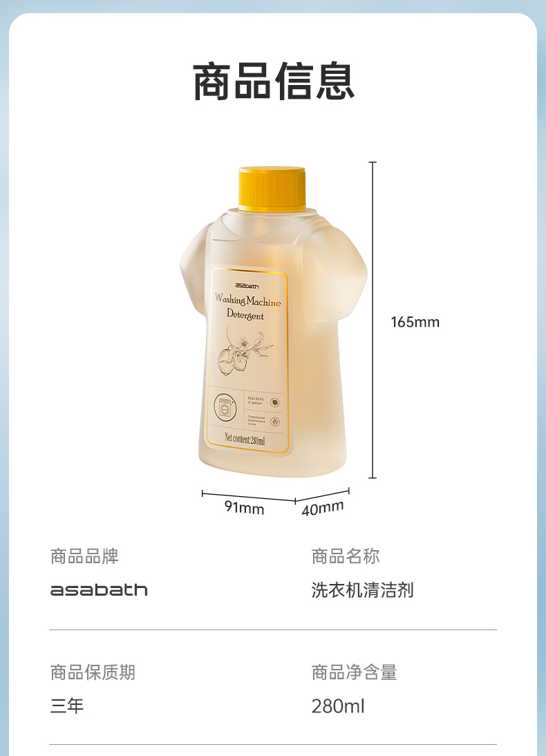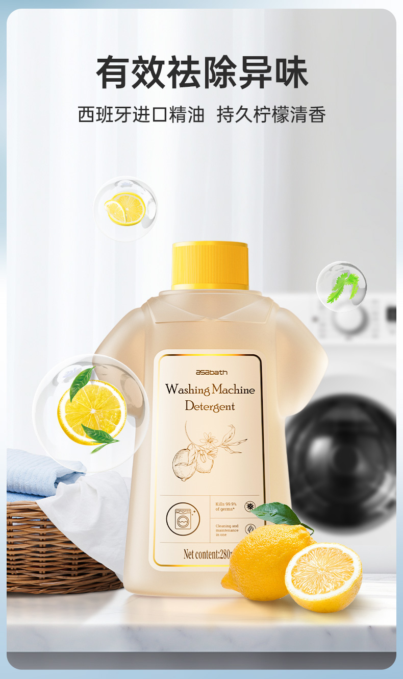 【芬兰百年品牌】asabath洗衣机清洁剂 一键自洁 排出10年脏水 除菌+去味+清洁+护机 抗菌不伤机 一瓶多用 280ml/瓶