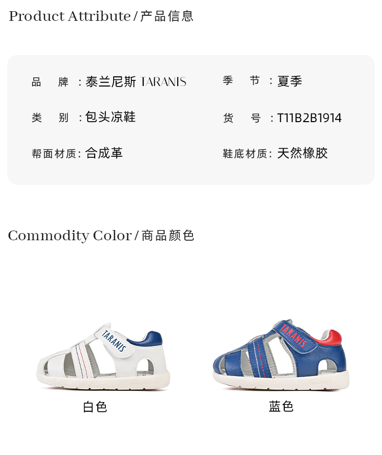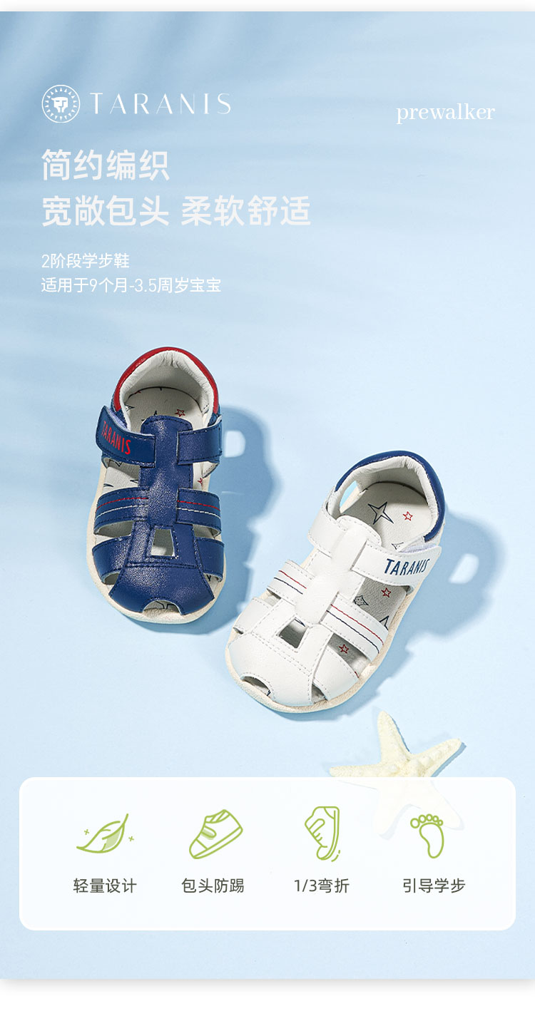 泰兰尼斯夏季婴童段简约编织宽头包头凉鞋T11B2B1914★
