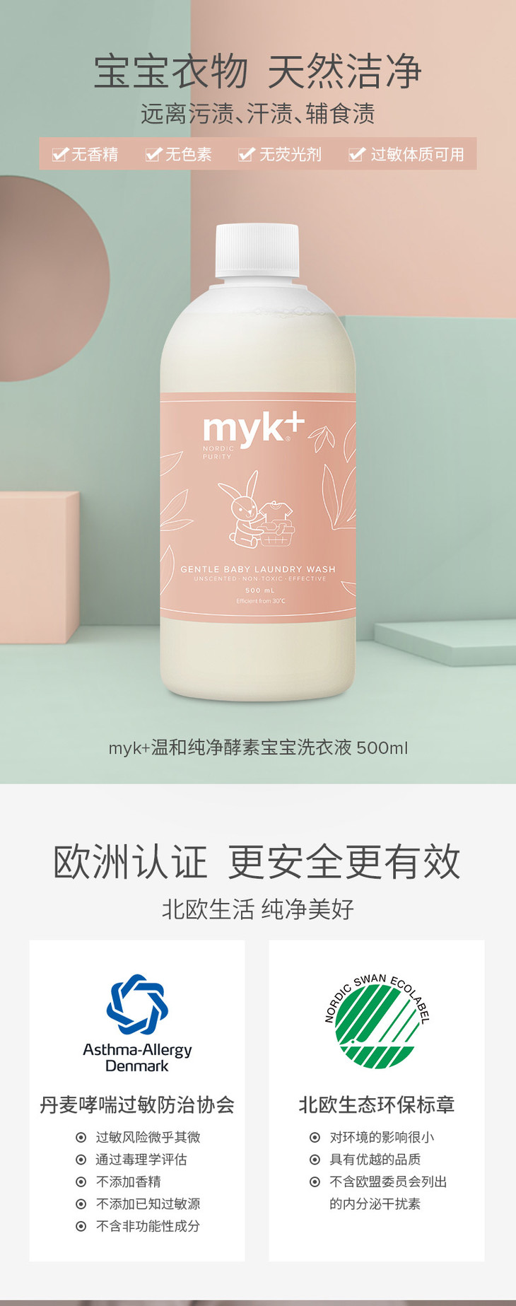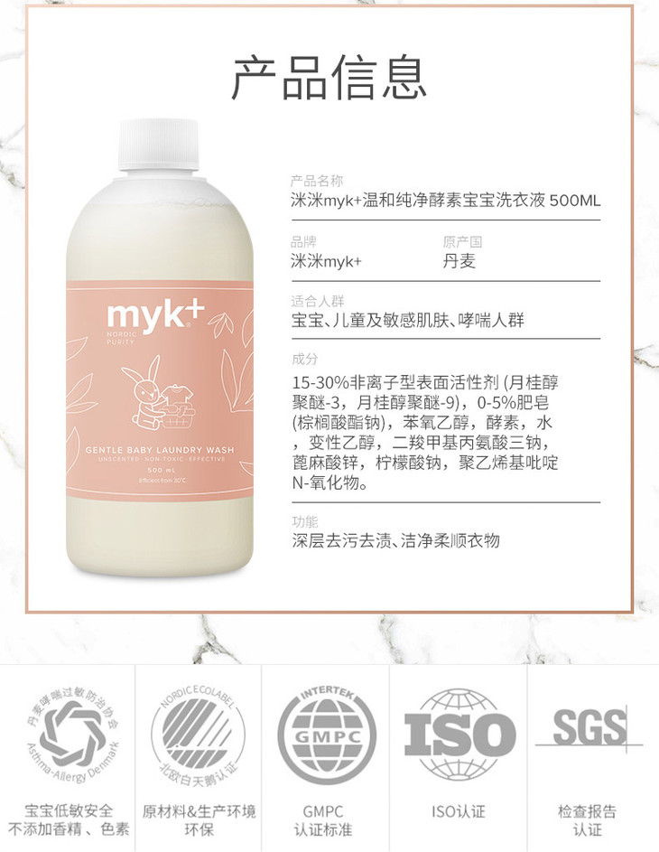 myk+洣洣温和纯净宝宝洗衣液专用婴儿幼儿衣物清洗液洗衣精500ml【洣洣】