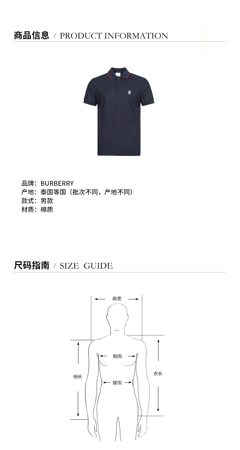 BURBERRY/博柏利 男士短POLO 男款棉质短袖POLO衫 8017007