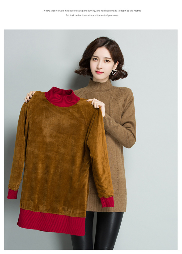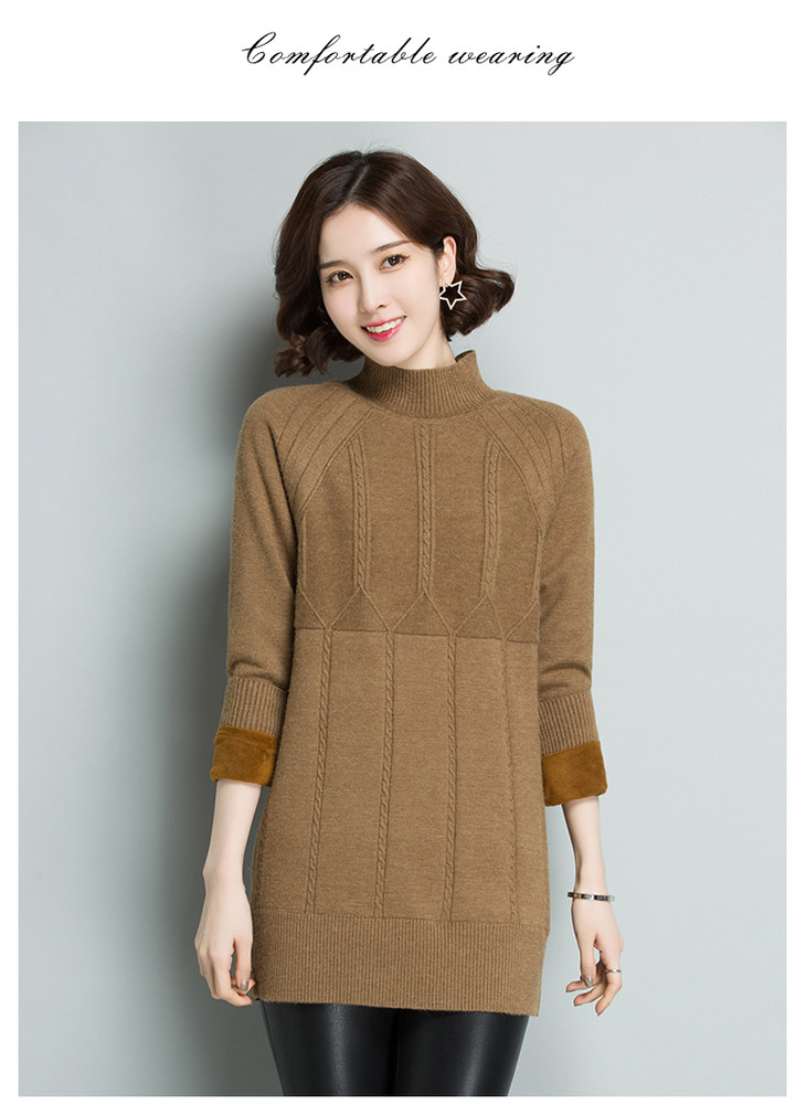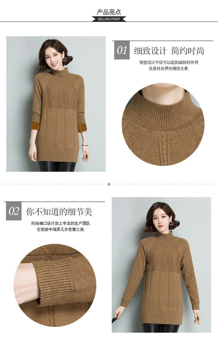 【11.11】百搭长袖中长款,宽松保暖加绒毛衣CC-5130