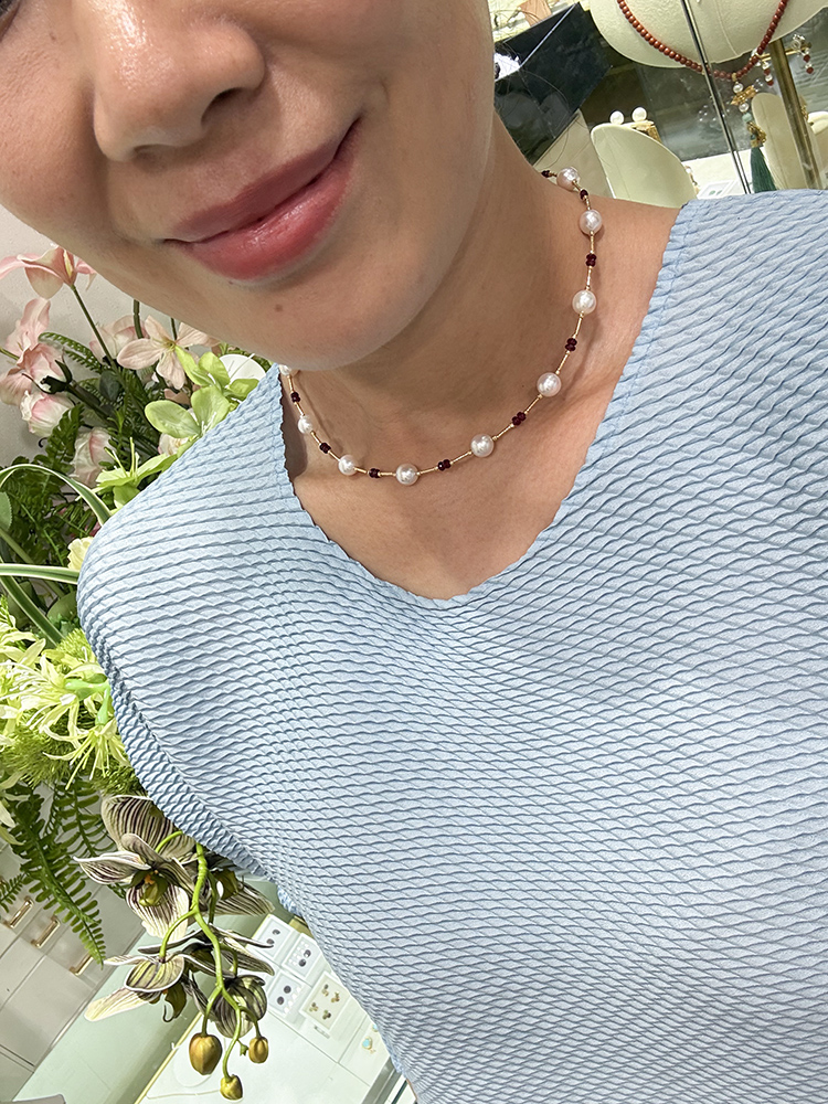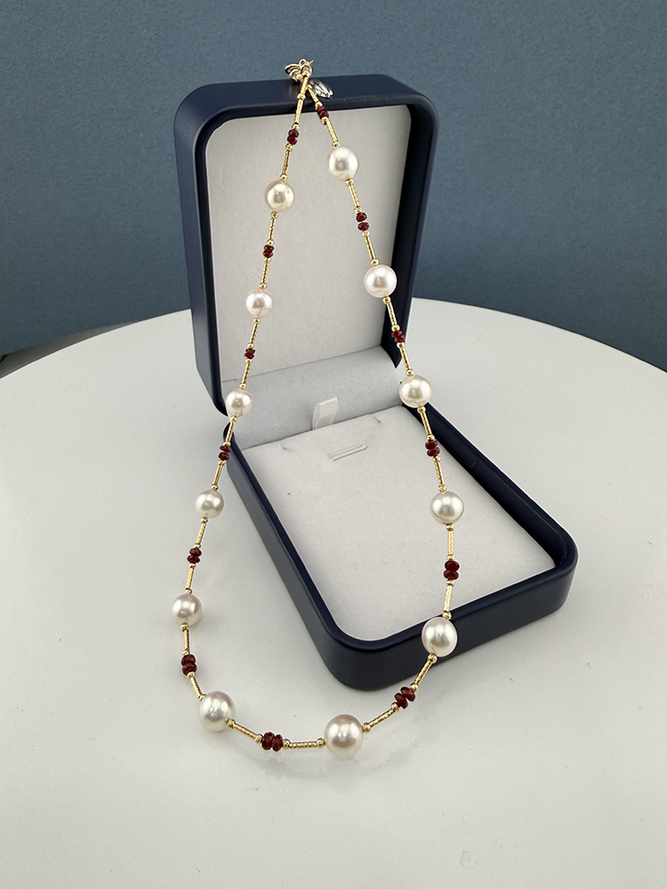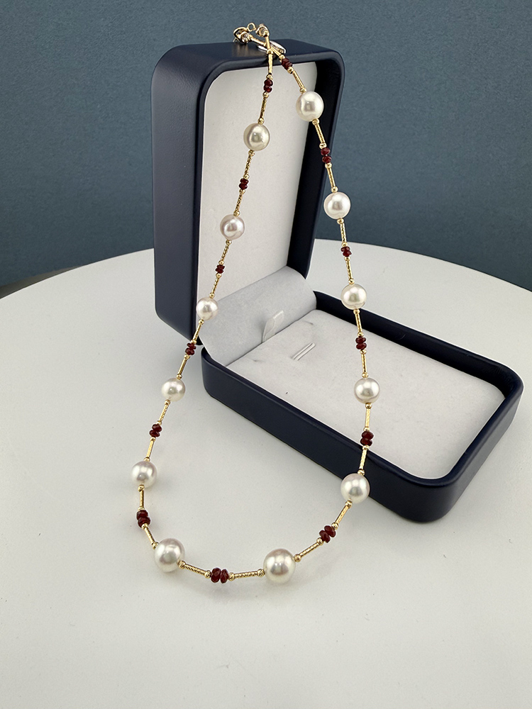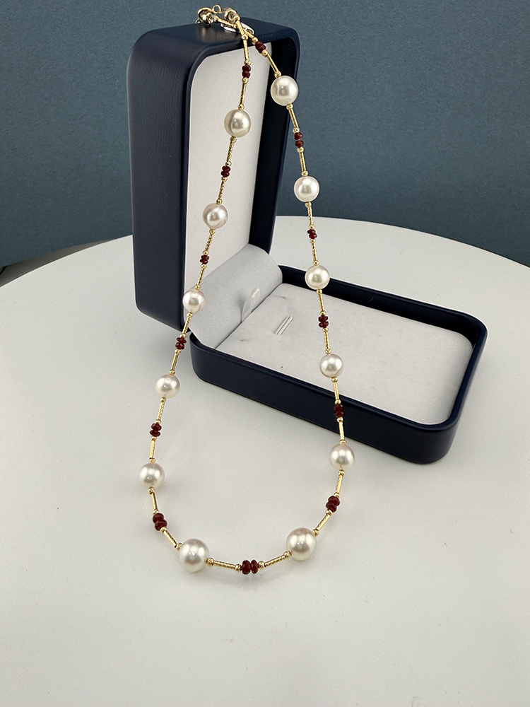 【挚友限定】竹节-18k金红宝石akoya珍珠项链7.5-8mm