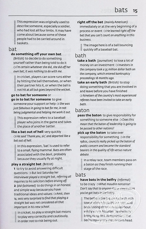 Examples from the Collins corpus show how key idioms are used in everyday English and usage notes explain where idioms come from and how they should be used.