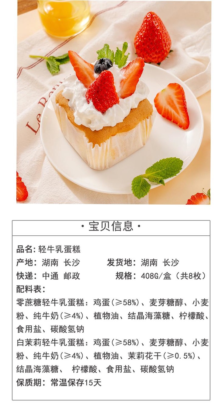 【轻牛乳蛋糕(零蔗糖轻牛乳蛋糕/白茉莉轻牛乳蛋糕)】58%超高鸡蛋含量,4%纯牛奶添加,每一口都是奶香浓郁、蓬松绵软!