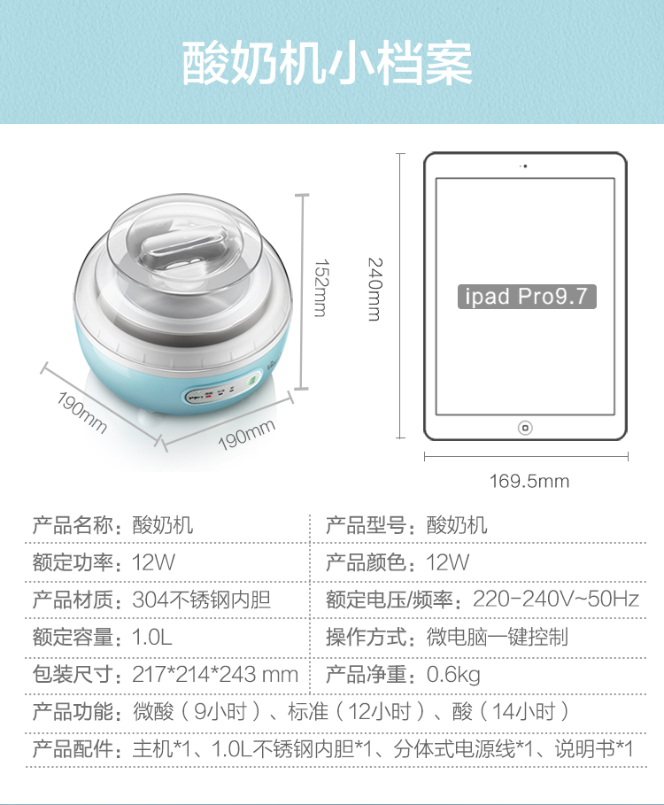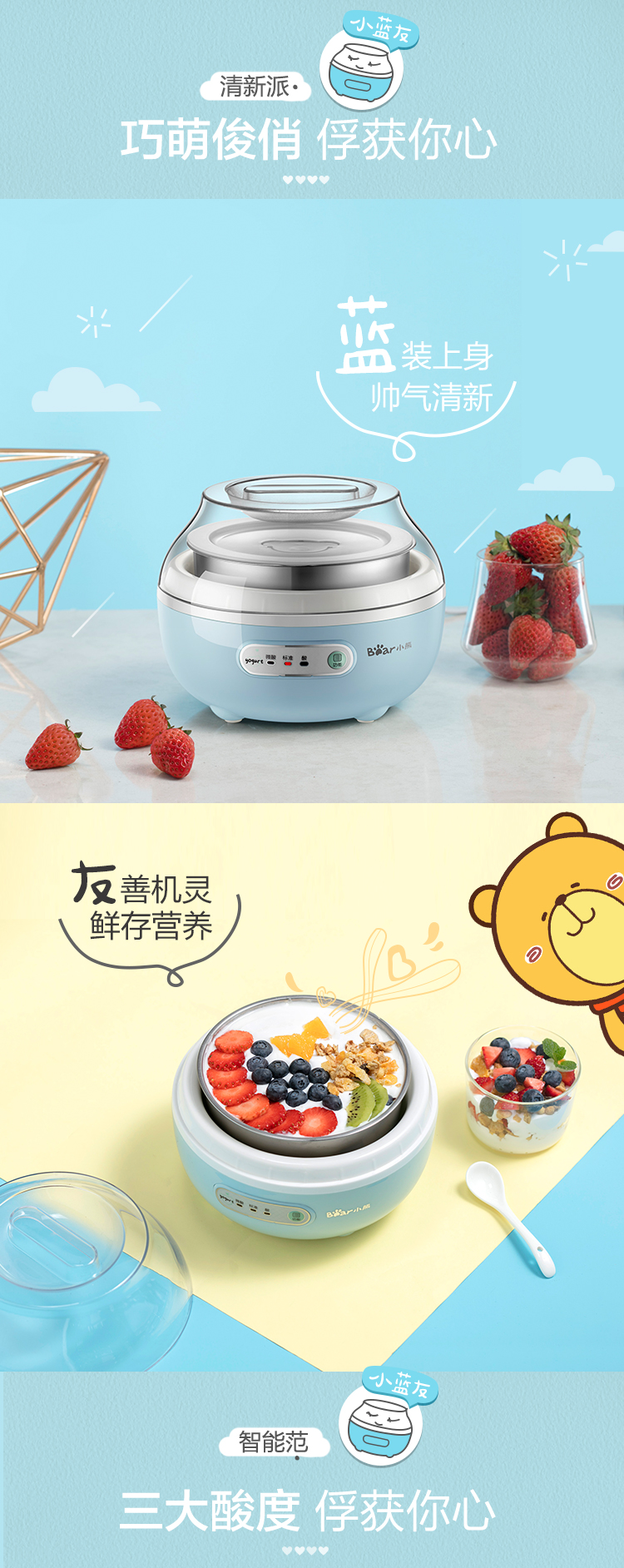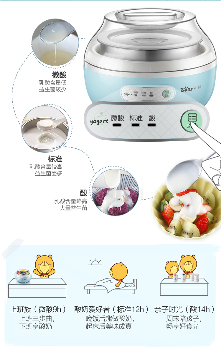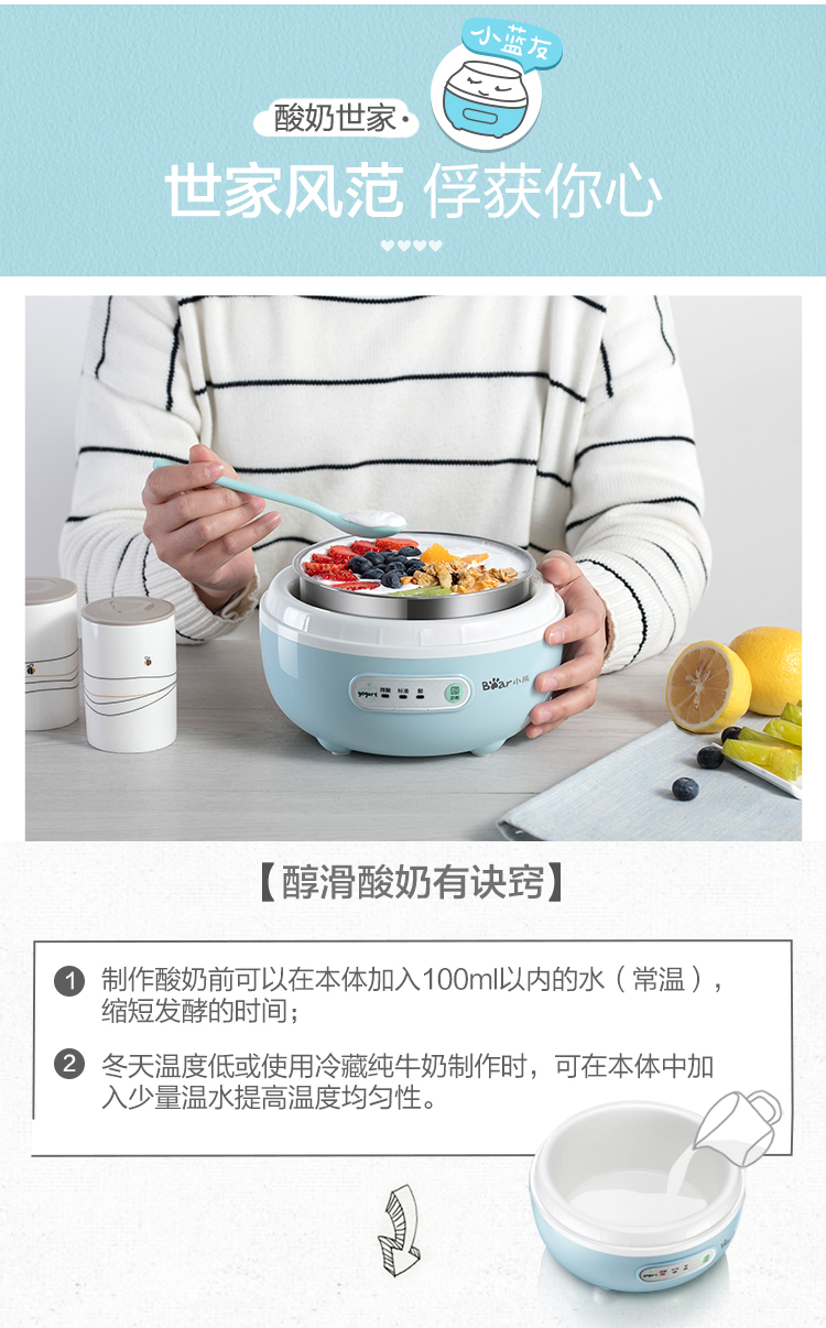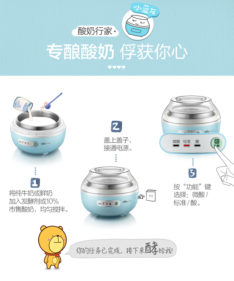 【小程序】小熊(Bear) 酸奶机家用全自动微电脑可定时不锈钢内胆酸奶发酵菌 【三档酸度+304内胆】SNJ-C10H1