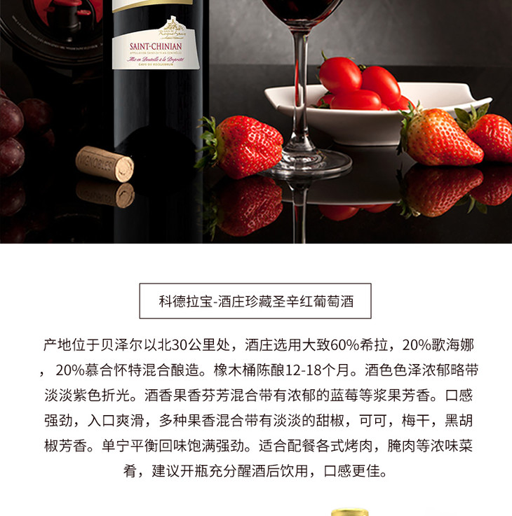 法国原瓶进口红酒 科德拉宝酒庄珍藏圣辛干红葡萄酒 Roquebrun Col de l'Orbe Or 单支装750ml