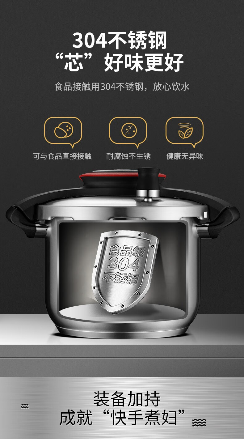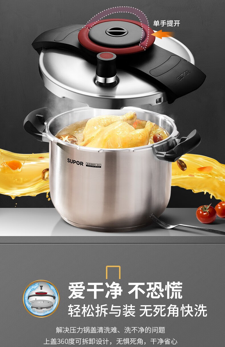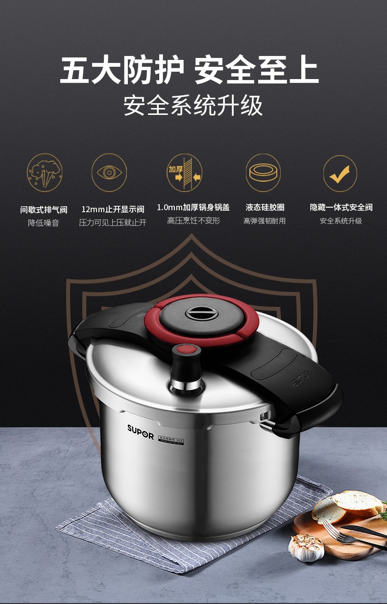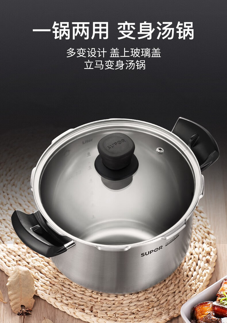 苏泊尔(SUPOR) 高压锅燃气压力锅304不锈钢高压锅 电磁炉煤气通用 容量大号蓝眼 直径22cm 5.5L YW223LB1