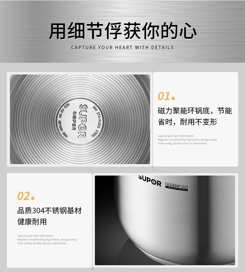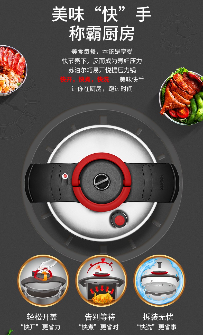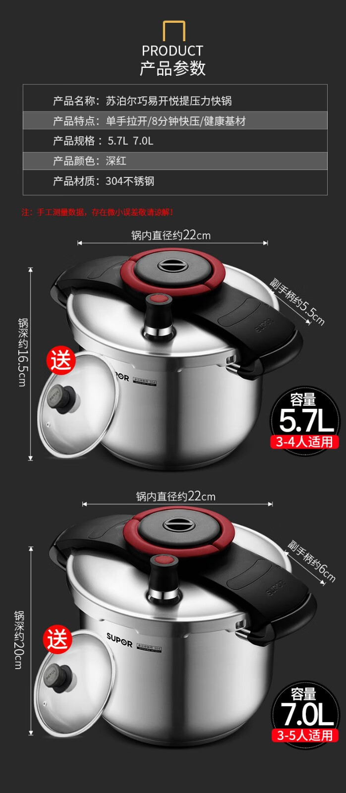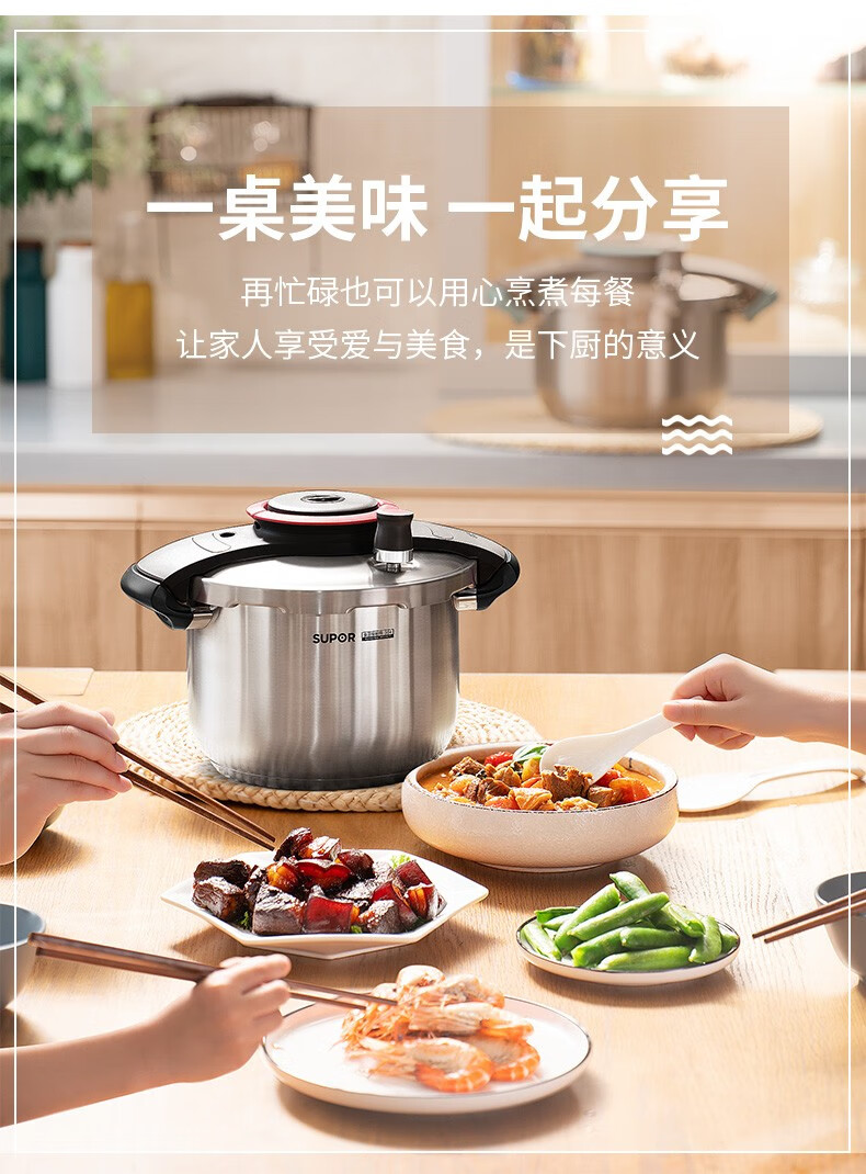 苏泊尔(SUPOR) 高压锅燃气压力锅304不锈钢高压锅 电磁炉煤气通用 容量大号蓝眼 直径22cm 5.5L YW223LB1