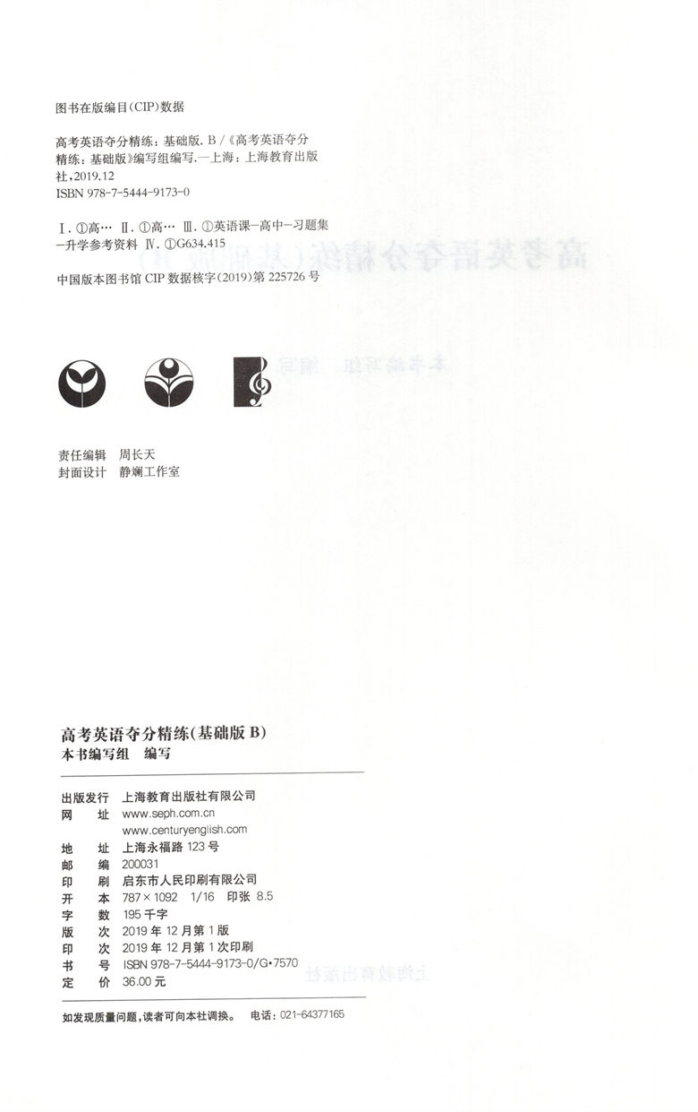 高考英语夺分精练 基础版B 世纪外教名师指导高考英语精练系列 攻克上海高考英语重难点 上海教育出版社
