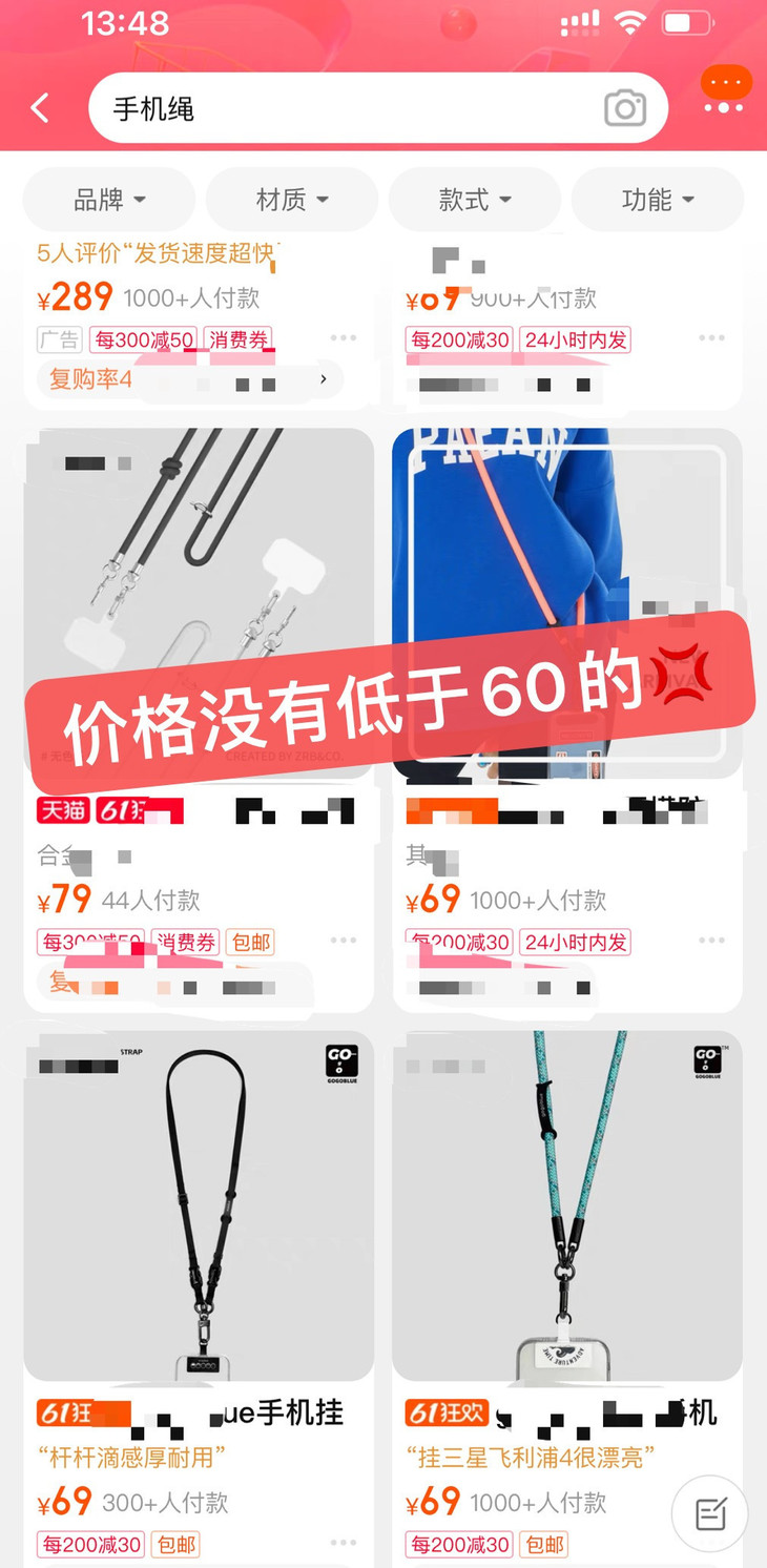 最重要的是这个手机挂绳只要两位数 想想如果手机不小心摔了❗ 屏幕坏了少则100+,多则1000+ 再者说出门一个不小心就忘记了手机放哪里 丢了损失的可不是一个手机这么简单 里面的重要信息也有可能找不回来 想想突然有点心慌怎么回事 手机挂绳必须安排上了 拯救丢三落四的小糊涂们!