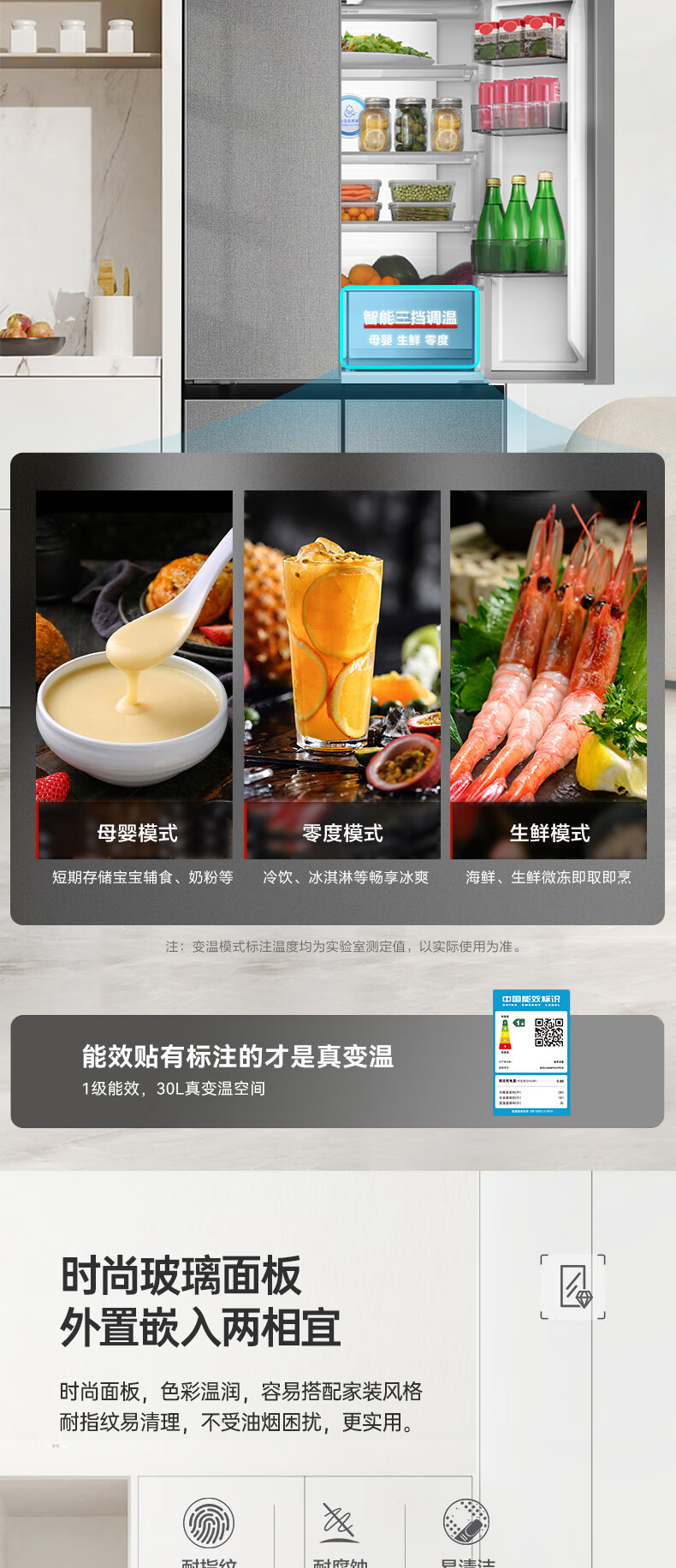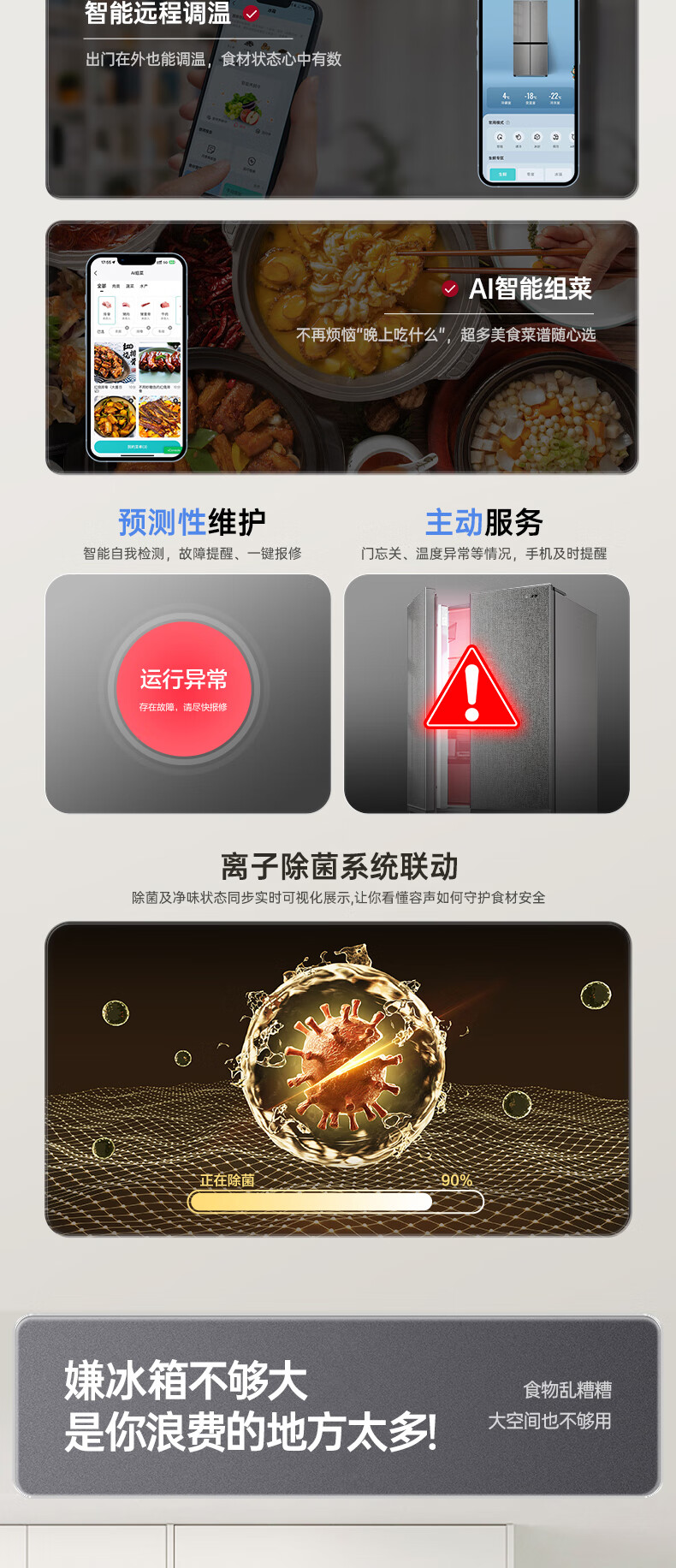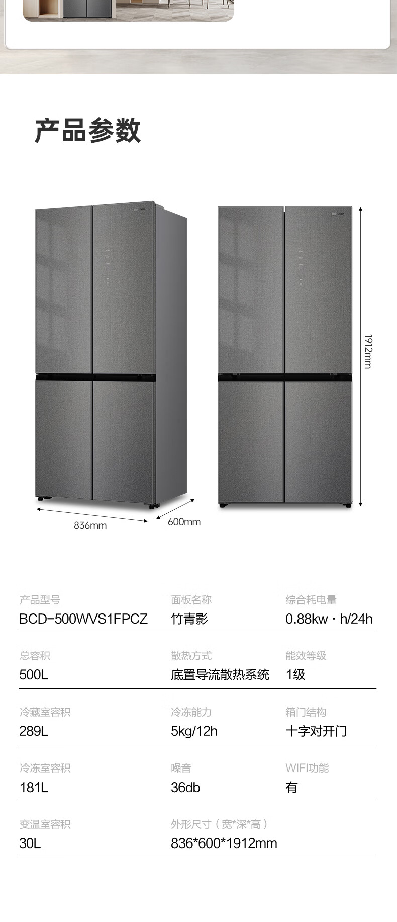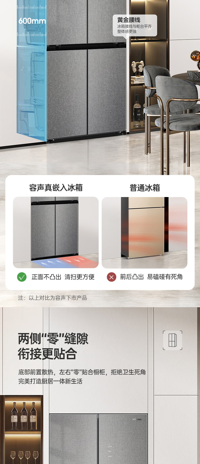 容声(Ronshen)500升 双净·超薄平嵌 十字四门冰箱 全空间抗菌净味 蓝光SPA养鲜 AI智慧温控 远程控制 一级变频 玻璃面板 风冷无霜BCD-500WVS1FPCZ