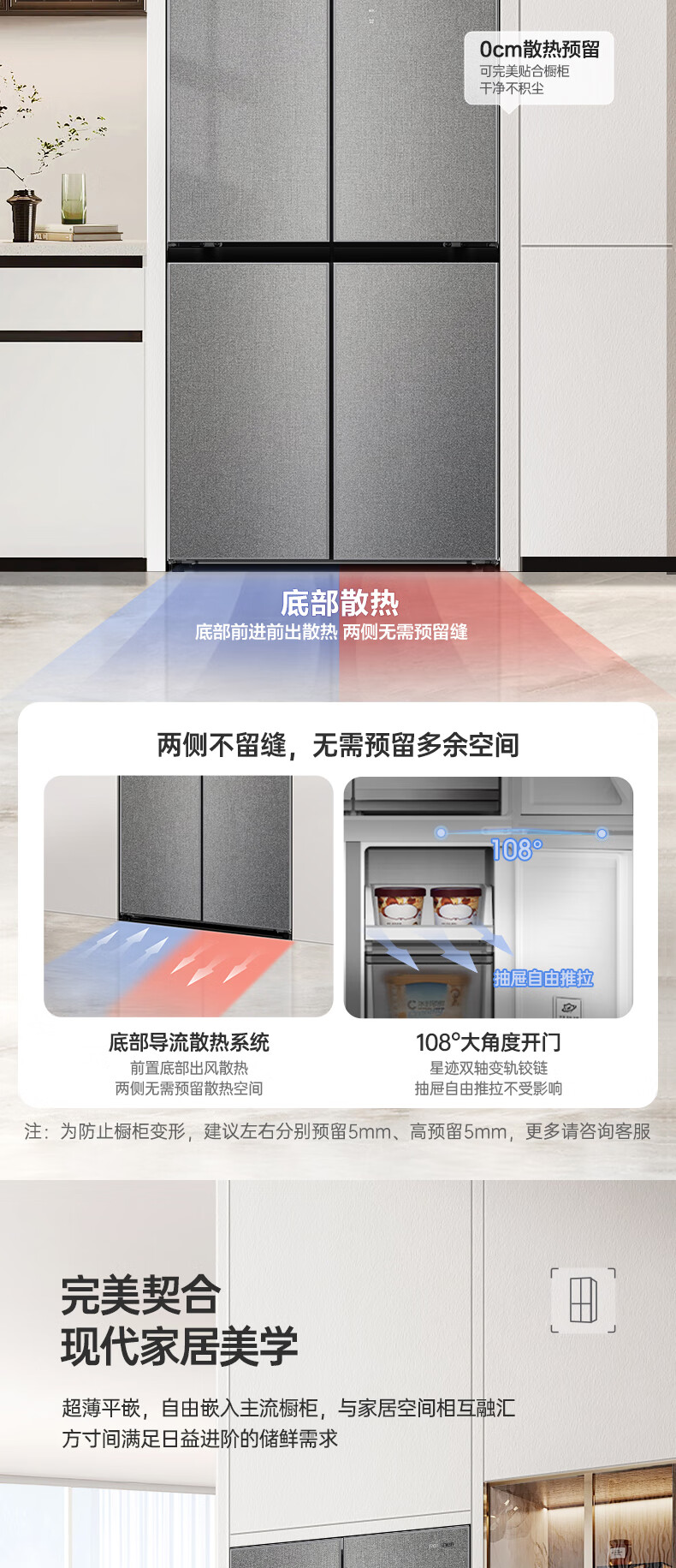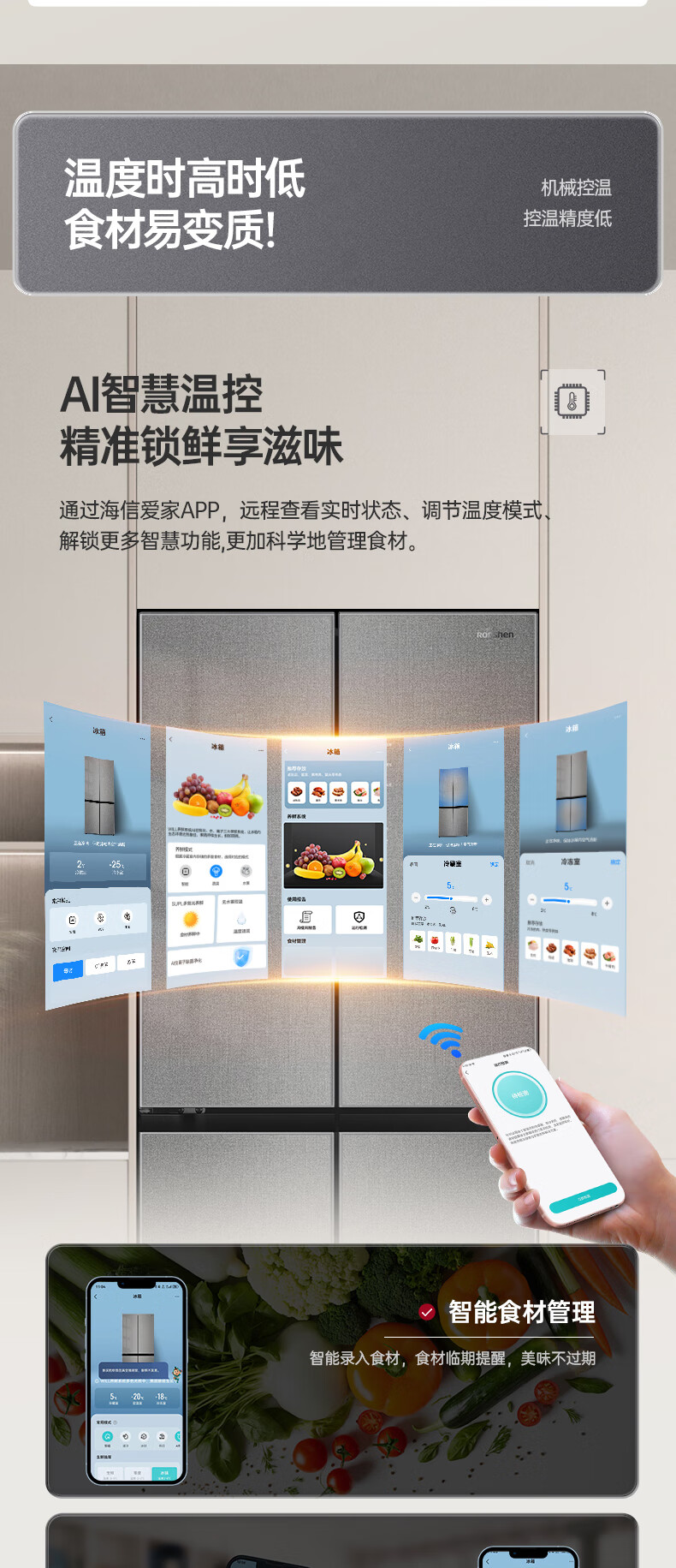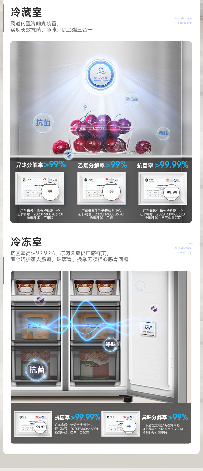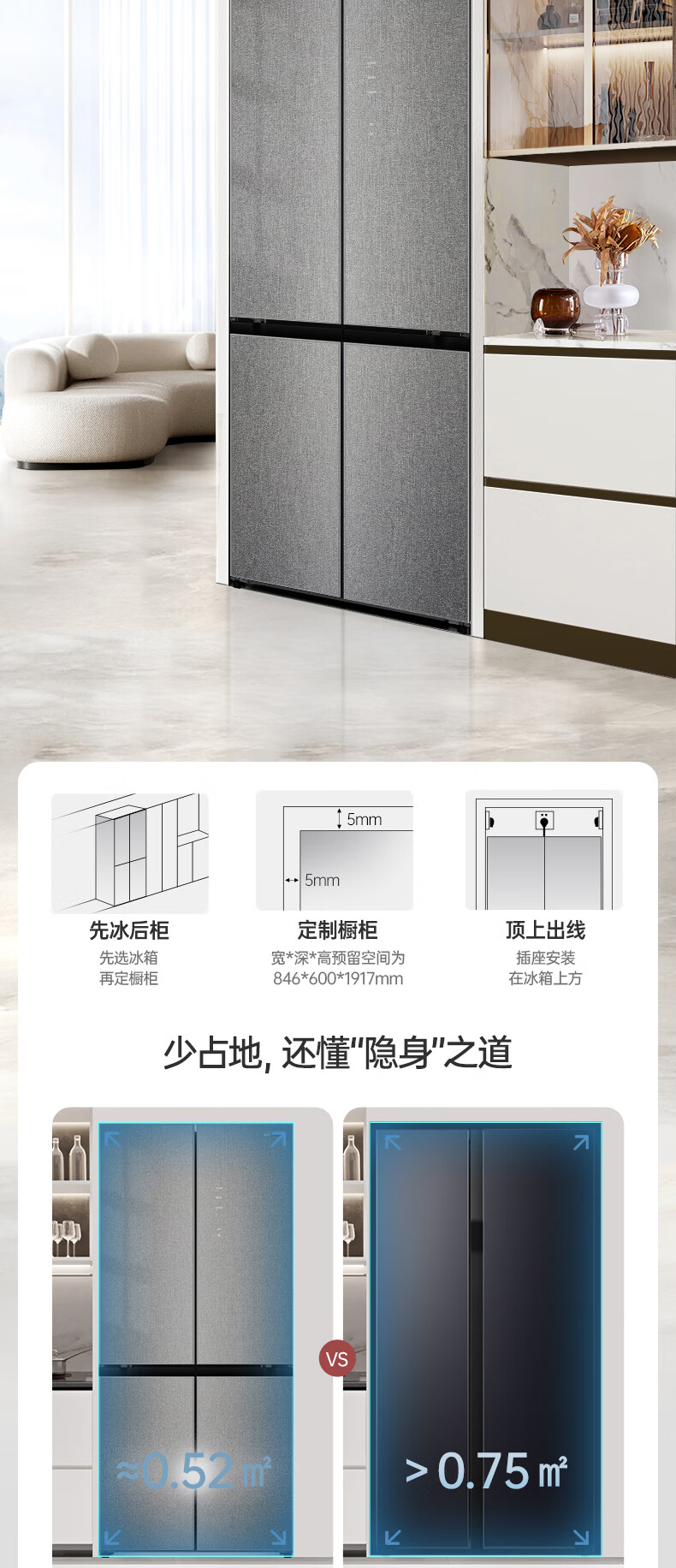 容声(Ronshen)500升 双净·超薄平嵌 十字四门冰箱 全空间抗菌净味 蓝光SPA养鲜 AI智慧温控 远程控制 一级变频 玻璃面板 风冷无霜BCD-500WVS1FPCZ