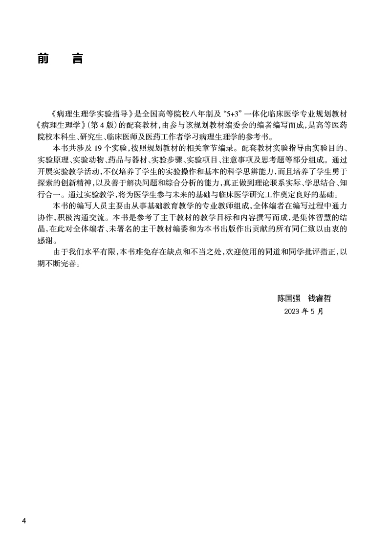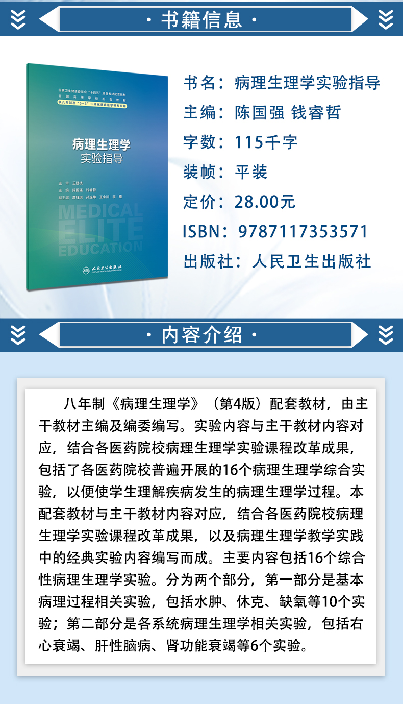 病理生理学实验指导 陈国强 钱睿哲 十四五规划教材全国高等学校配套教材 供八年制及5+3一体化临床医学等专业用 人民卫生出版社