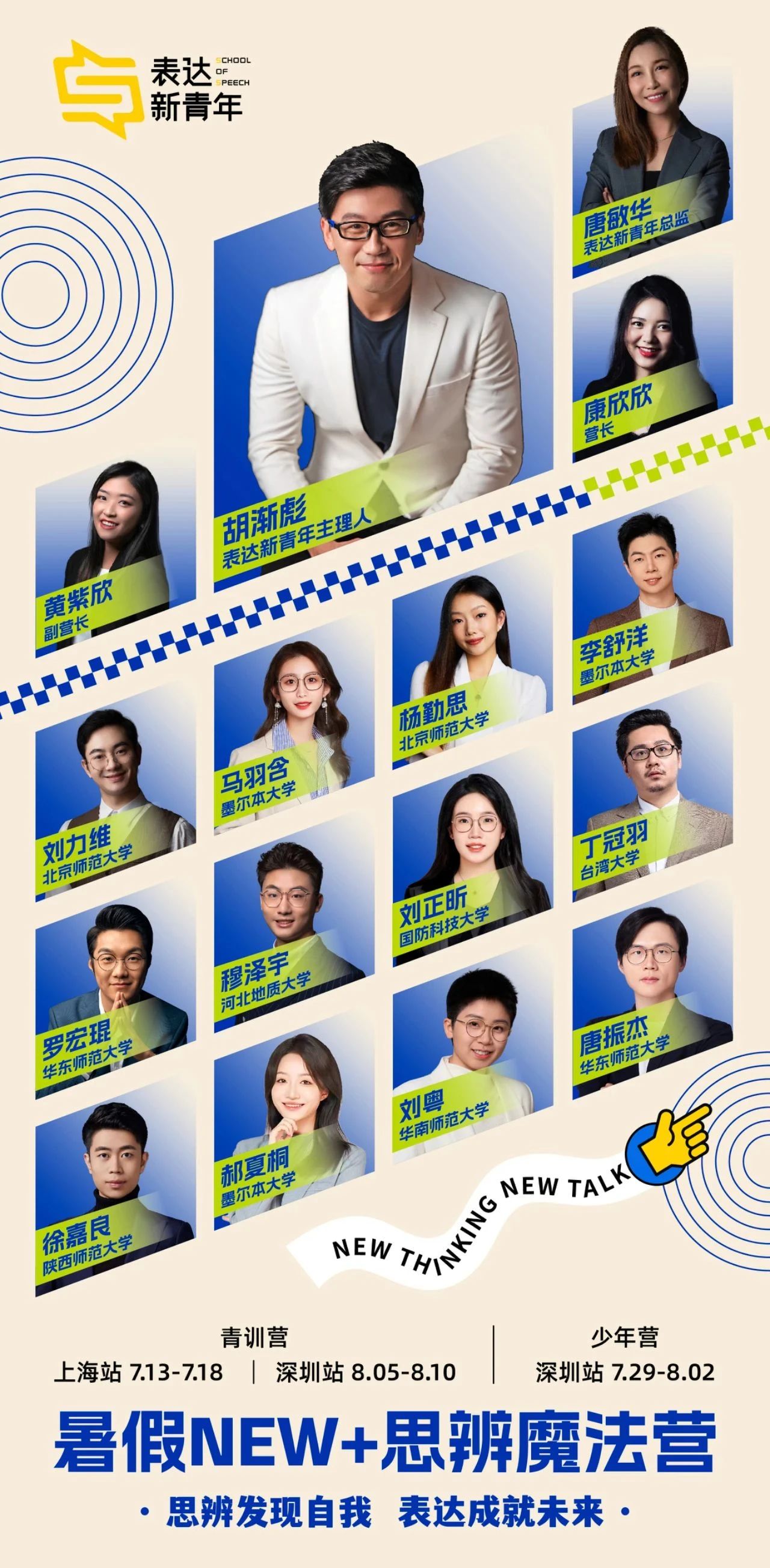 教练们带队风格活泼生动,风趣幽默,深受孩子们的喜爱。教练们会在营队期间倾尽所学,打开思辨与表达的大门,带孩子们进入这个极富魅力的殿堂。