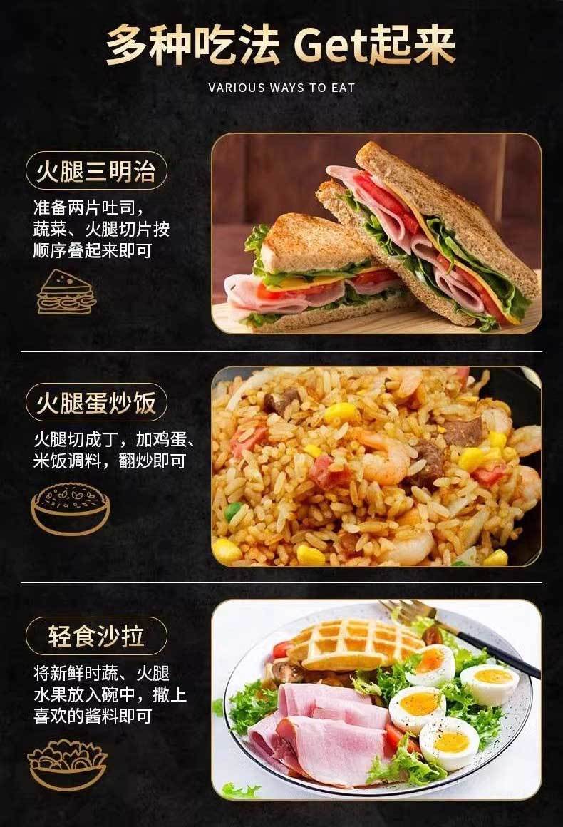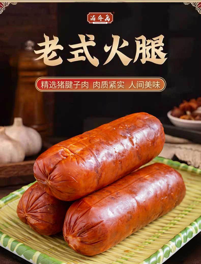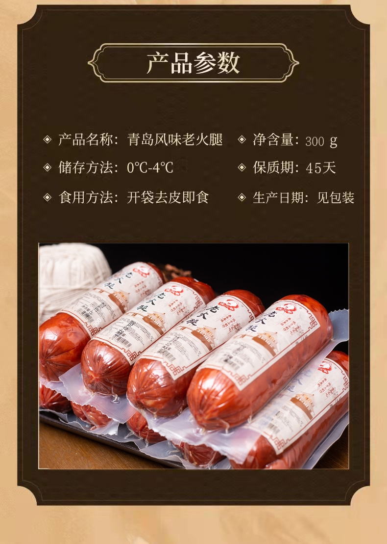 果木熏烤·青岛老式火腿 精选猪腱子肉 大颗肉粒肉丝 传统熏烤挂壁工艺 肉香十足分量感满满!