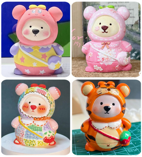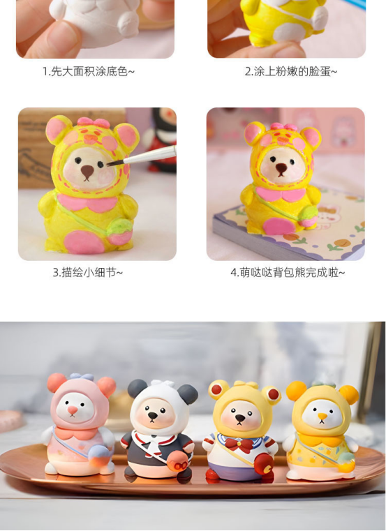 我猜你家也一定需要这一套可可爱爱的治愈小熊! 何况是小神兽的“巧手之作”💥千万别着急给孩子报暑假班 疯狂石膏作坊搬回家做早教手工太绝了! 超级治愈解压! 自己给小玩偶DIY独特的色彩! 每一只都是可爱的单品摆件