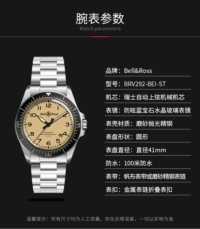 Bell & Ross 柏莱士 VINTAGE 系列 BRV292-BEI-ST/SST 腕表