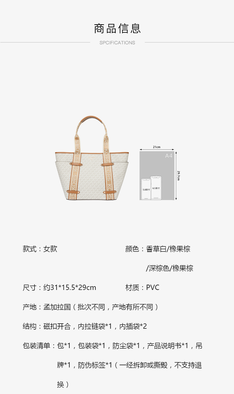 MICHAEL KORS 迈克.科尔斯 女士MAEVE系列老花图案大号购物袋手提托特包30T2G5VT3B