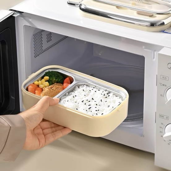 上班带饭的尽头还得是不锈钢饭盒 ✅内胆接触食物的是304不锈钢 ✅有搭配筷子勺子~ ✅双层设计,隔断分开不串味 ✅摘盖子可进微波炉,里面加水也可以加热 颜值高!多场景适用!! 上班族、学生党必入~