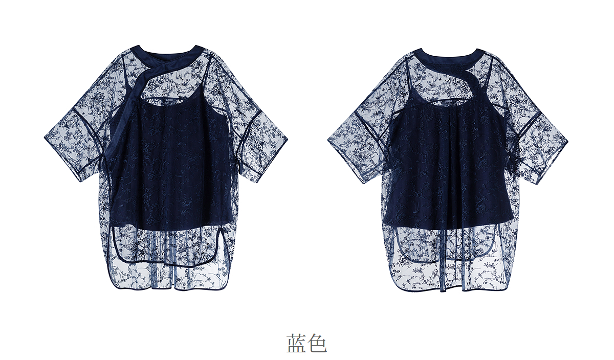 【林栖设计小店】浮花芳意|蓝色绣花肌理感新中式2026夏新款衬衣两件套1962118