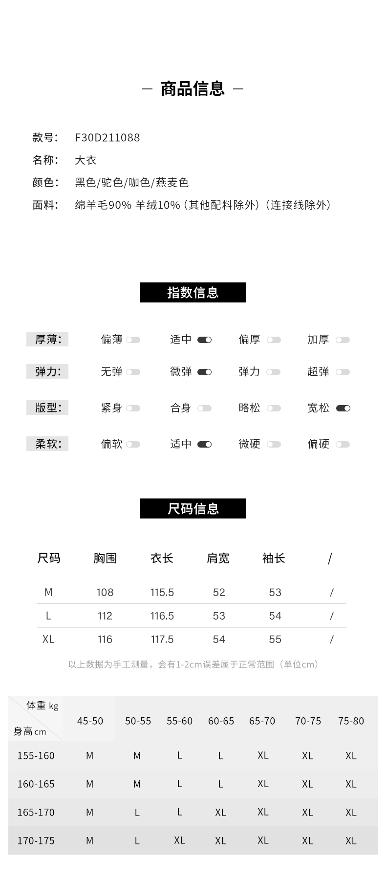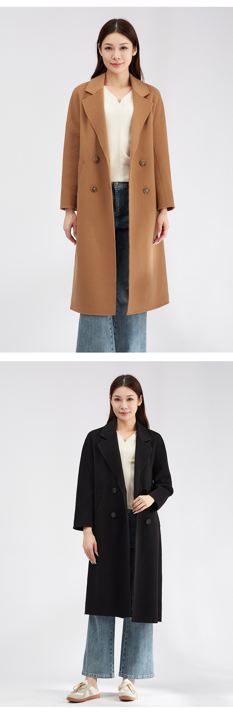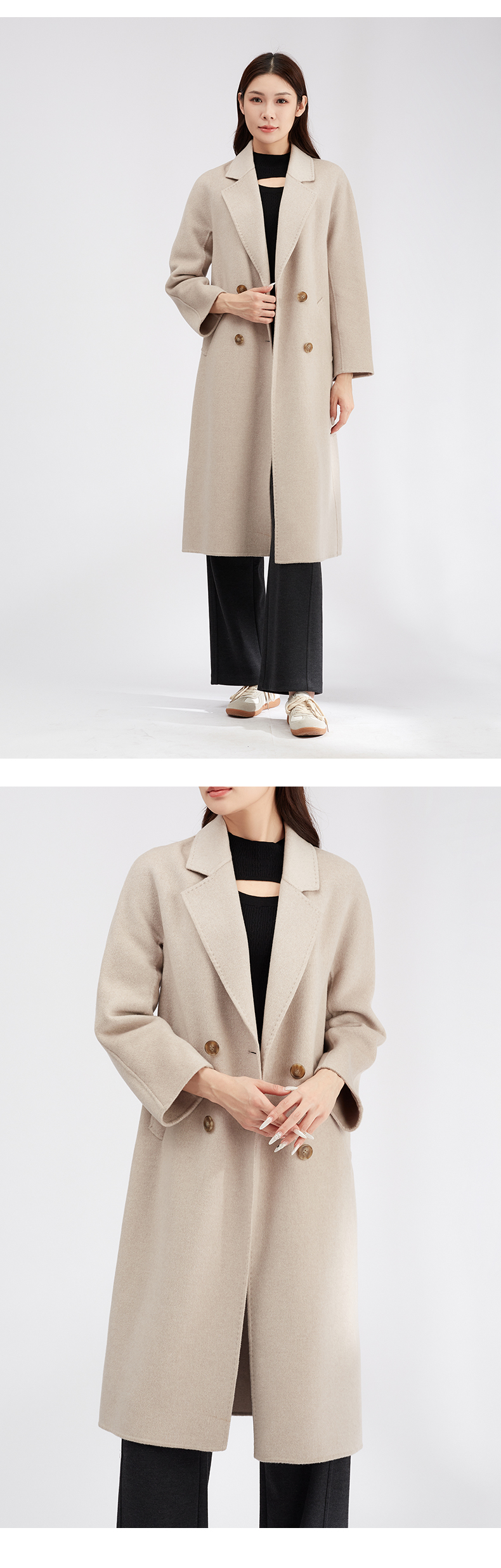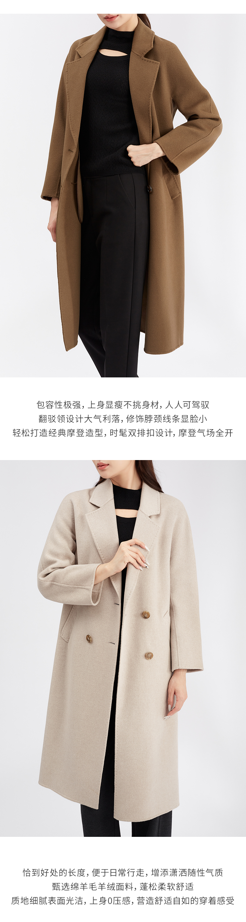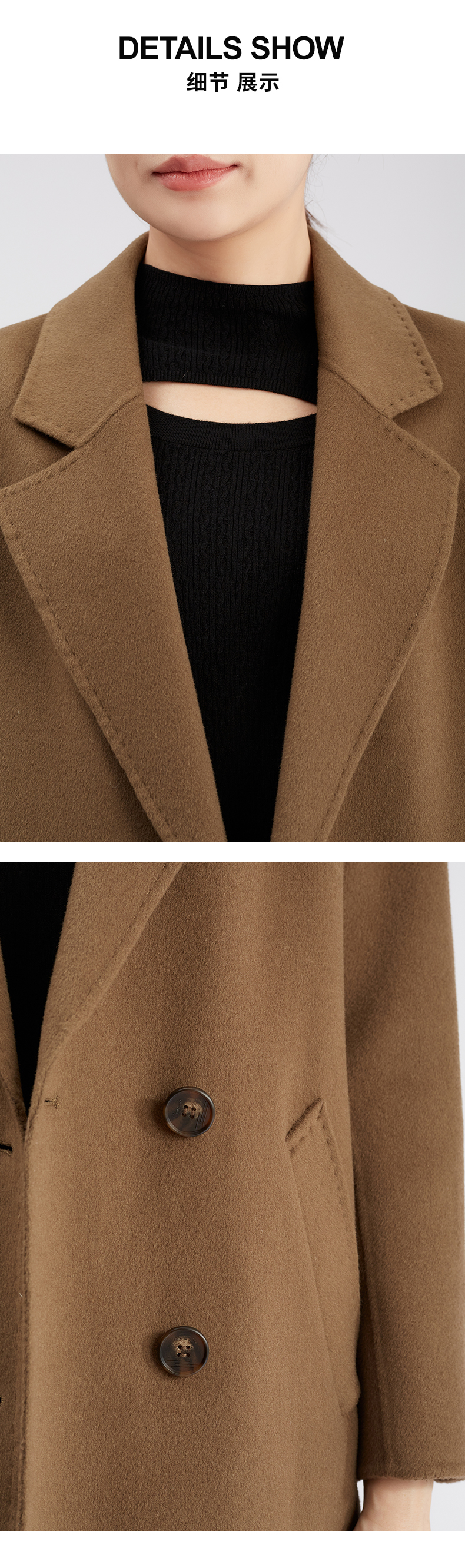 【商城同款】阿菁娜高智羊绒翻驳领双排扣大衣F30D211088