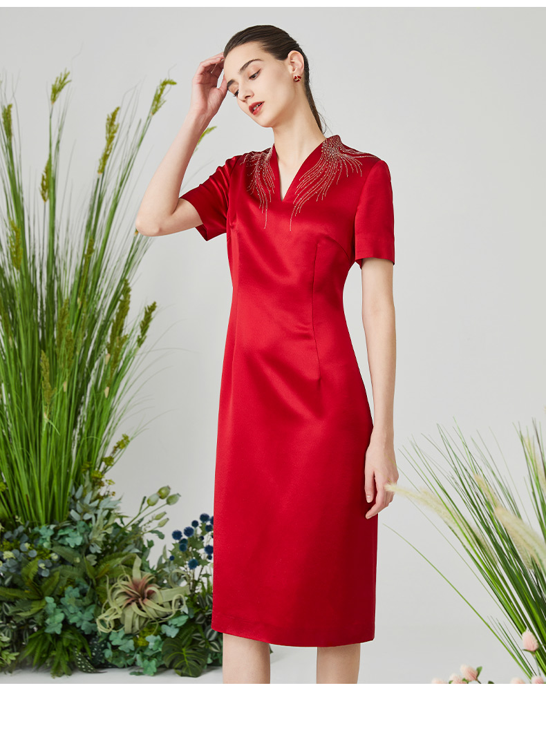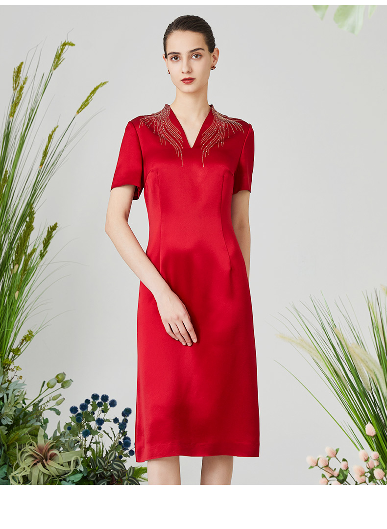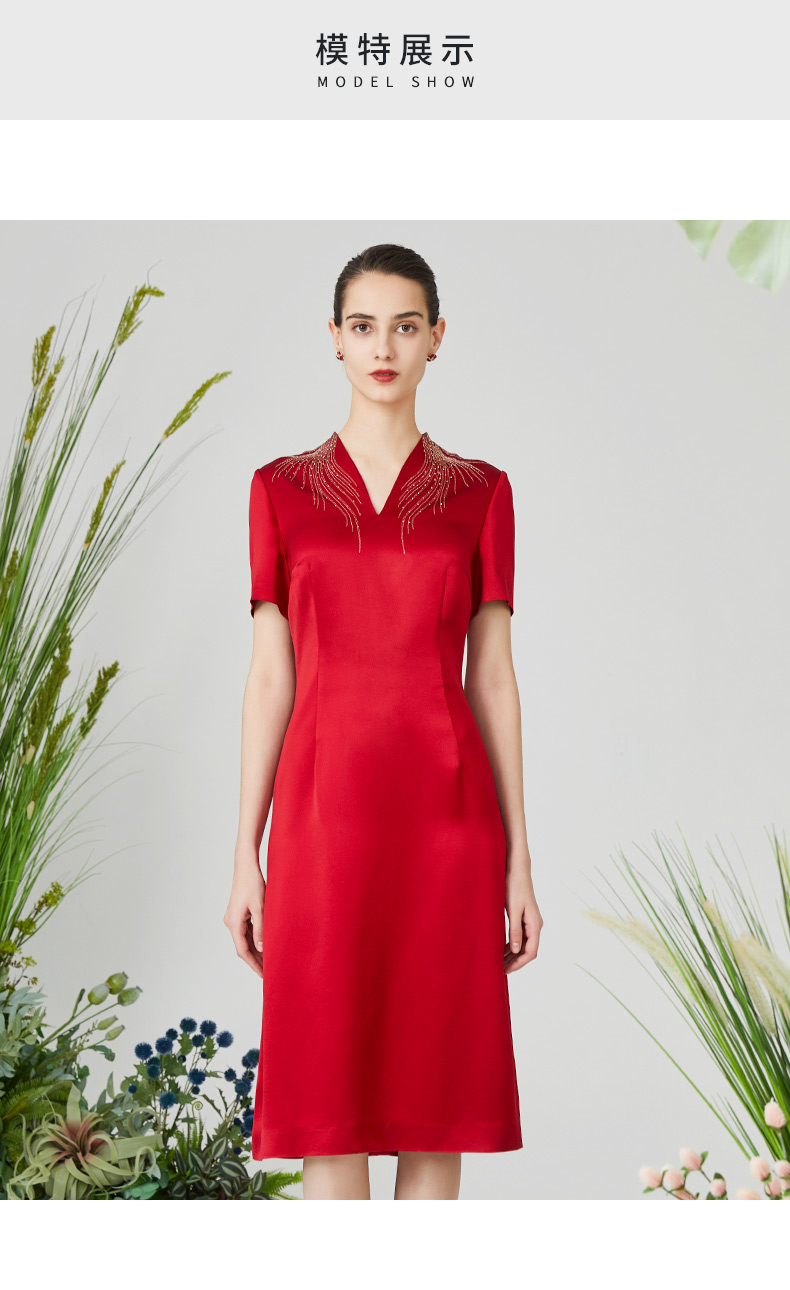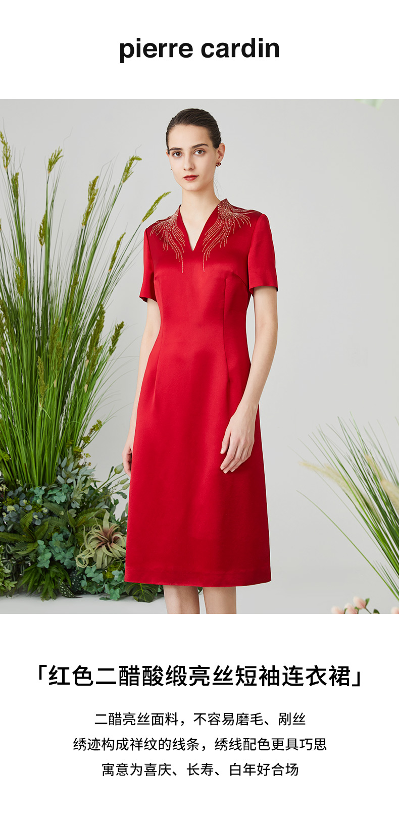皮尔卡丹女装夏季新款端庄淑女宴会礼服连衣裙P3106D3027R0