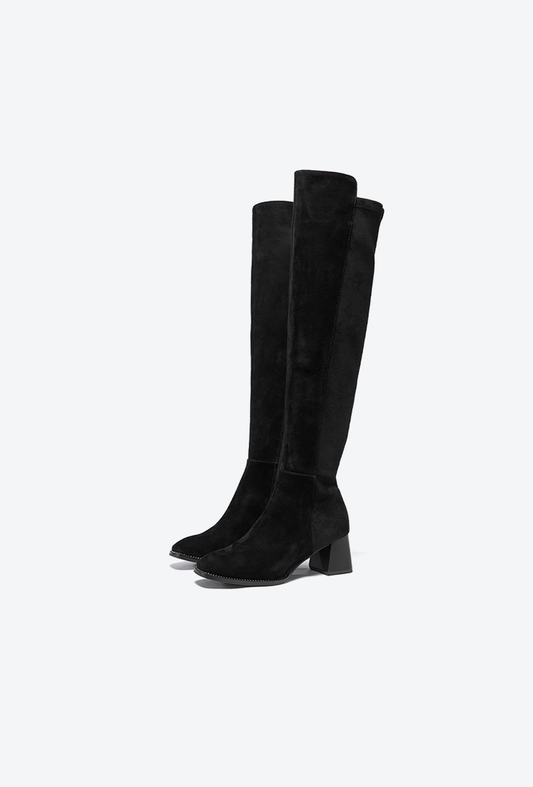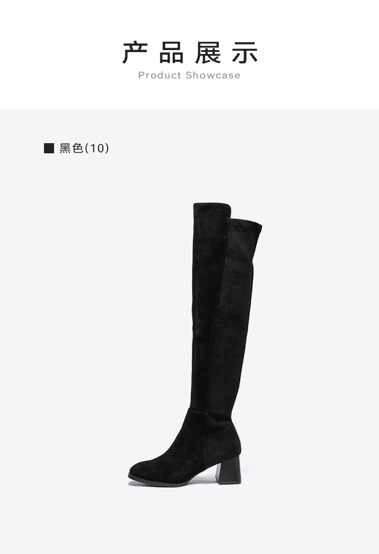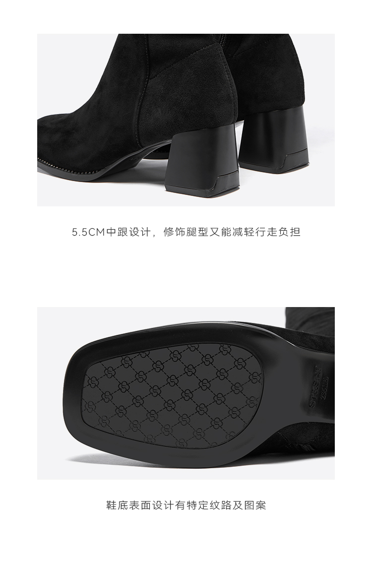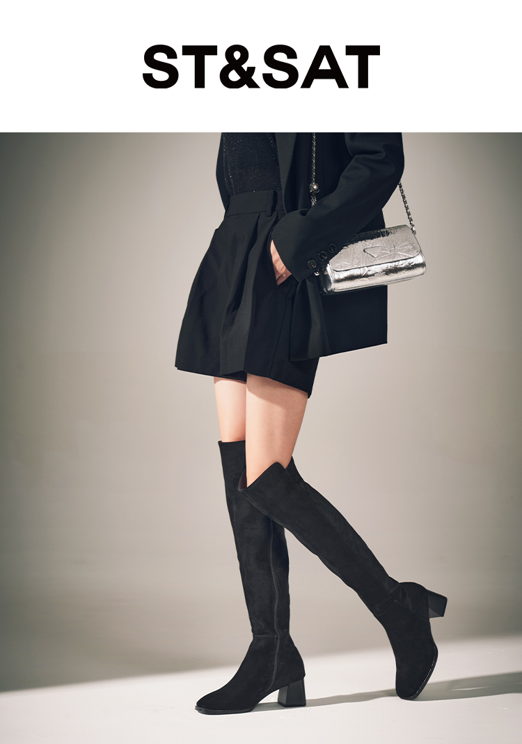 星期六铆钉延边显瘦绒面过膝长靴SSC4117382