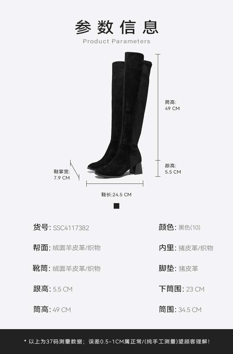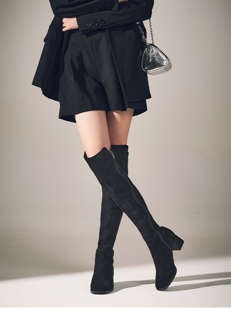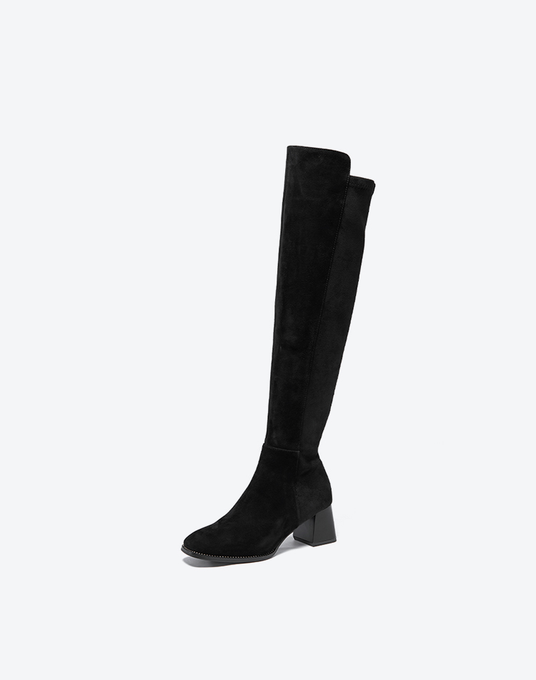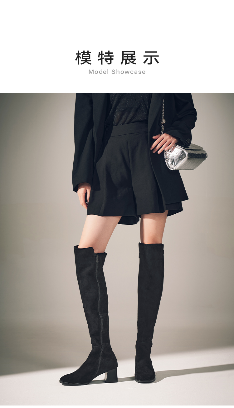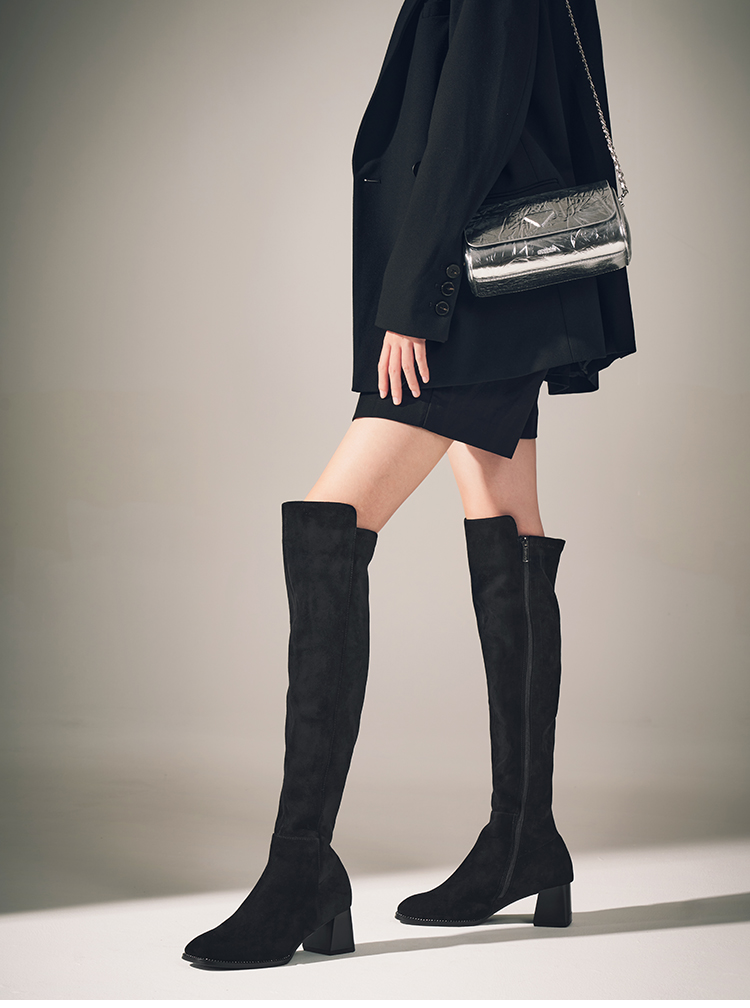 星期六铆钉延边显瘦绒面过膝长靴SSC4117382