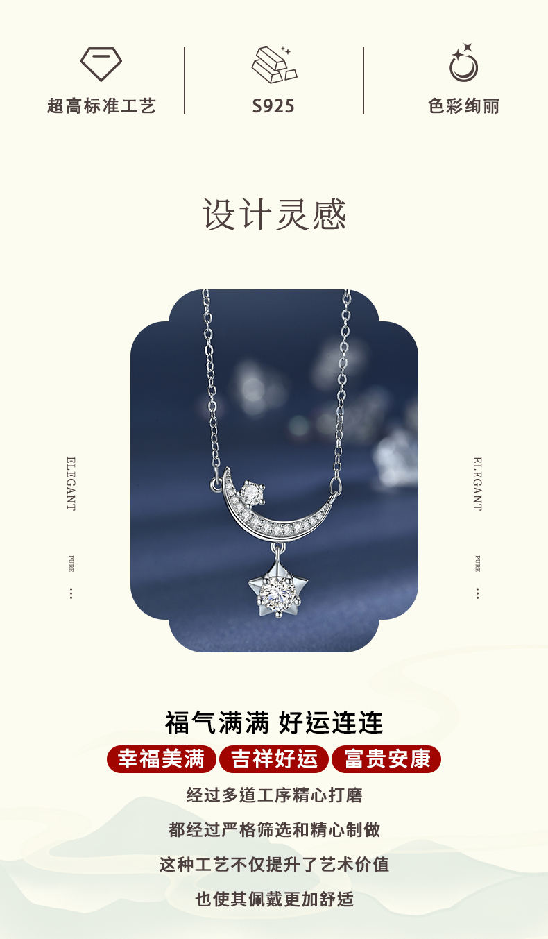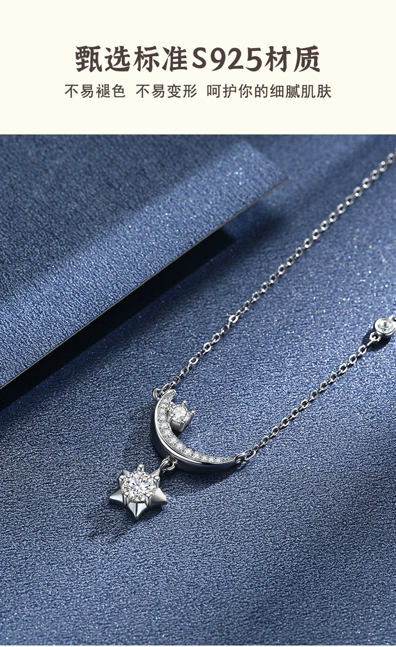 卡蒂罗KADER 星星月亮项链 925银小众轻奢满天星辰浪漫百搭设计锁骨链 ins极简风甜美流苏干净大方 项链 女款 银色