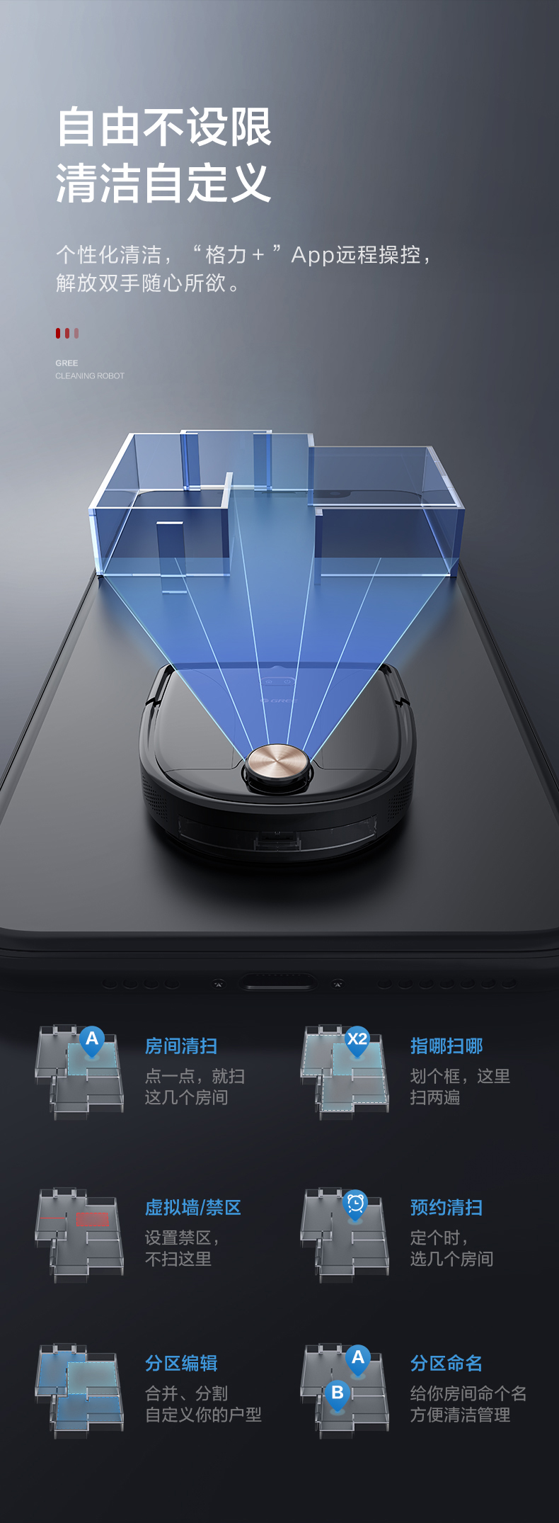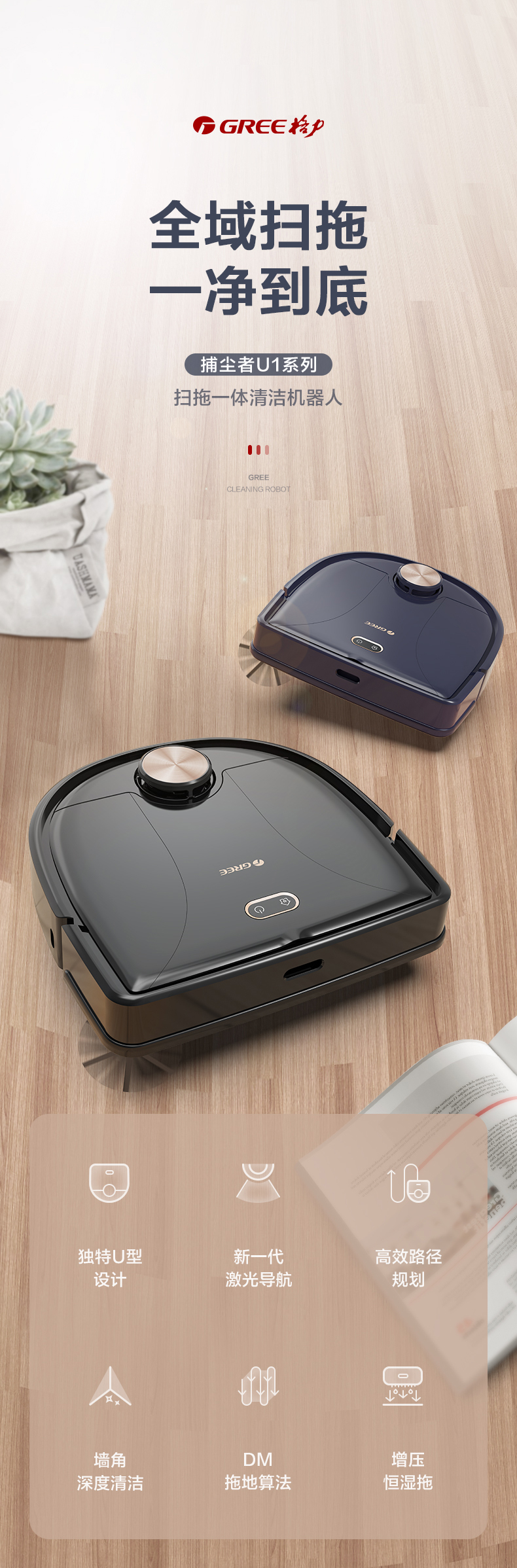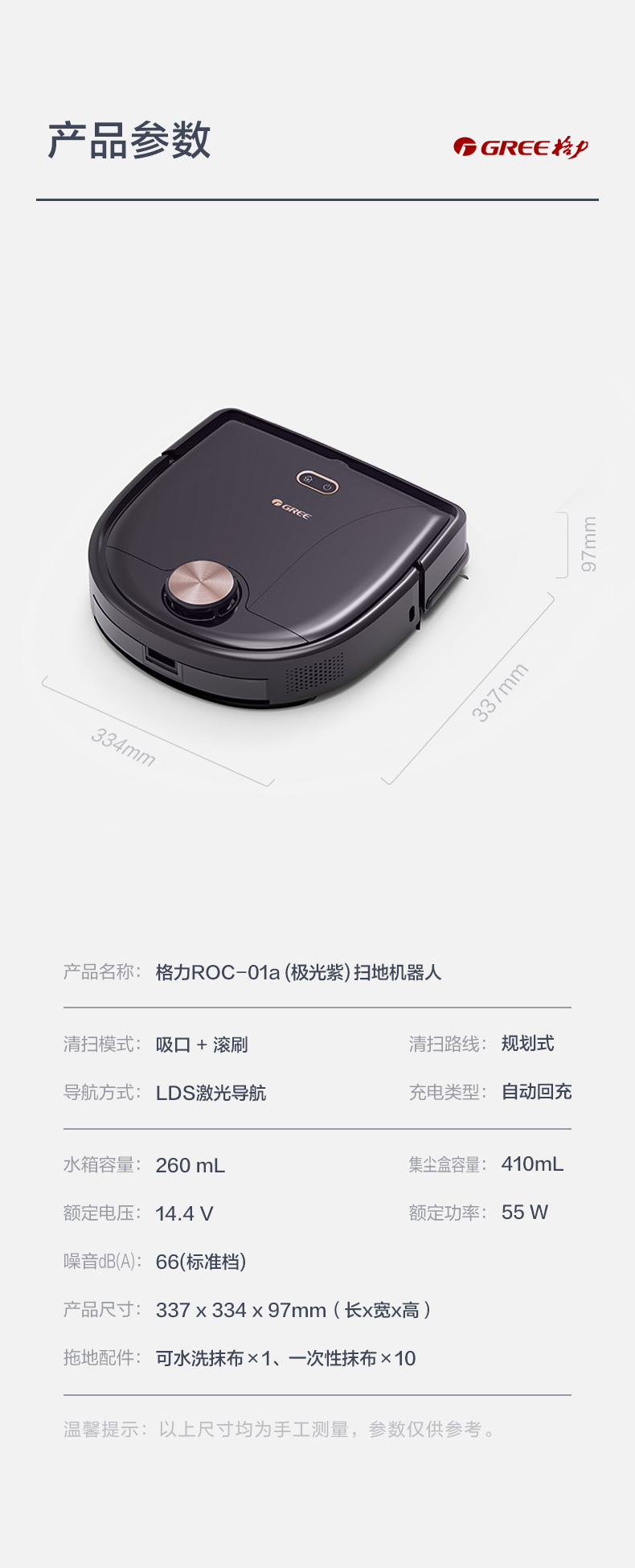 【预售】格力·洗拖一体机 智能扫地机器人 避障清洁吸尘机 ROC-01a 极光紫