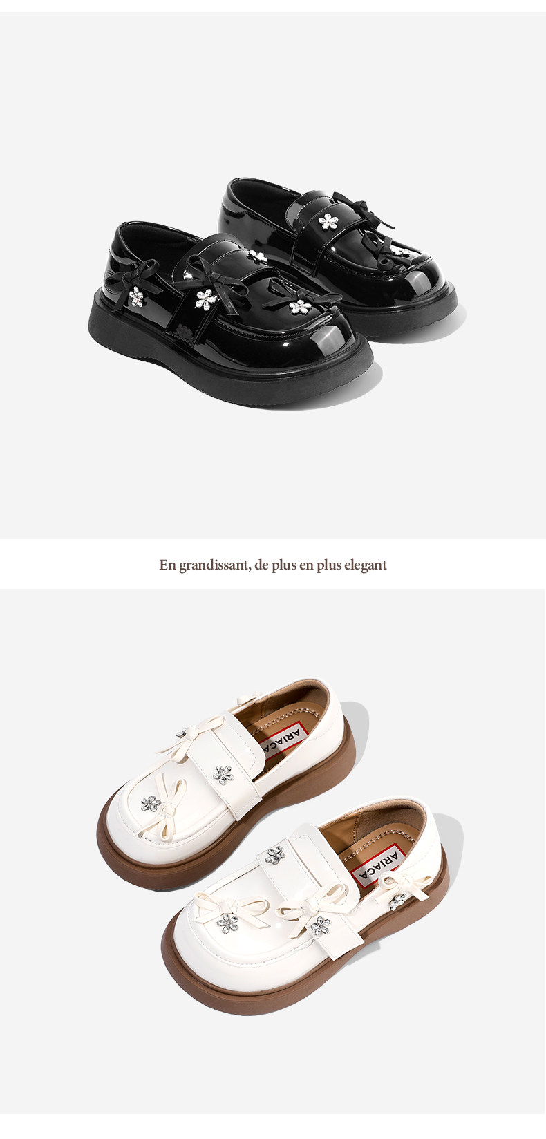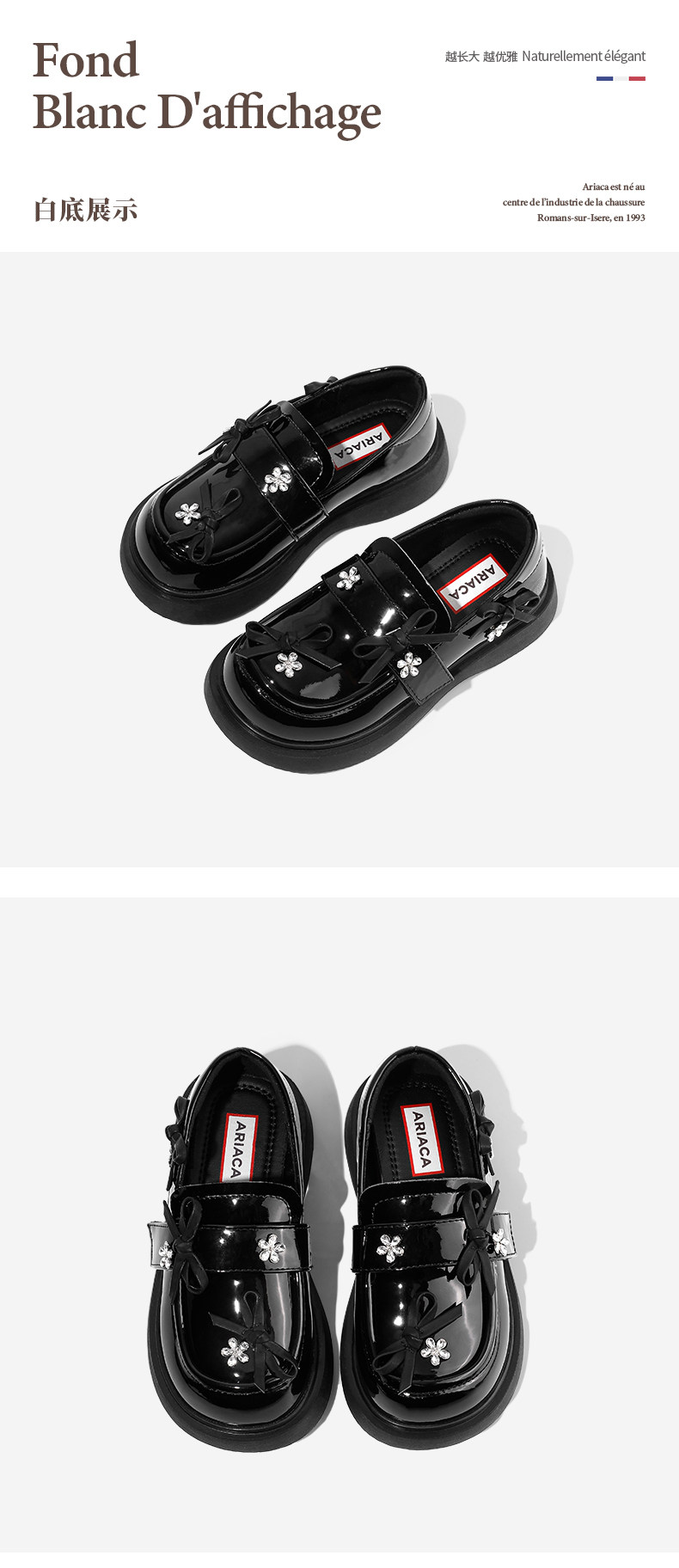 ARIACA艾芮苏儿童公主鞋单鞋秋季新款水钻演出乐福鞋女童黑色皮鞋
