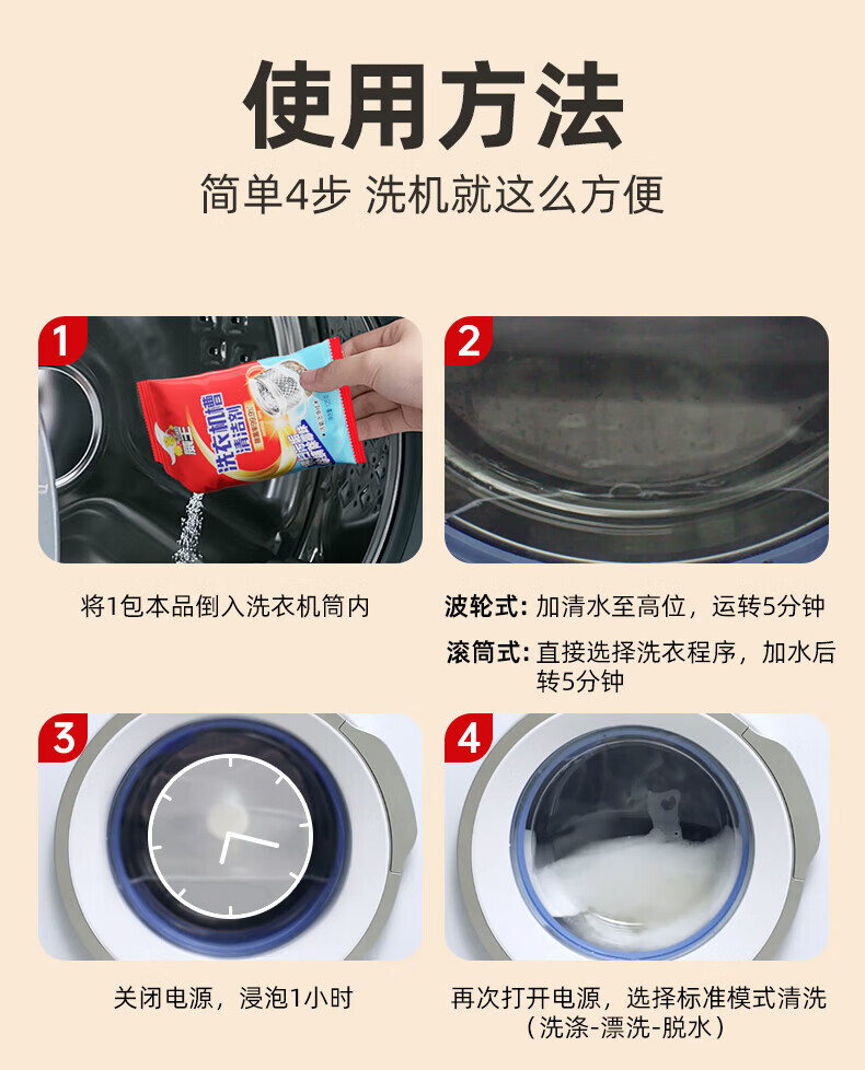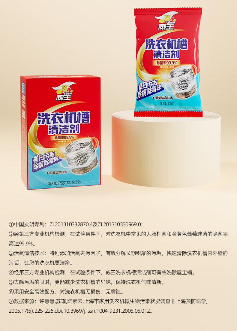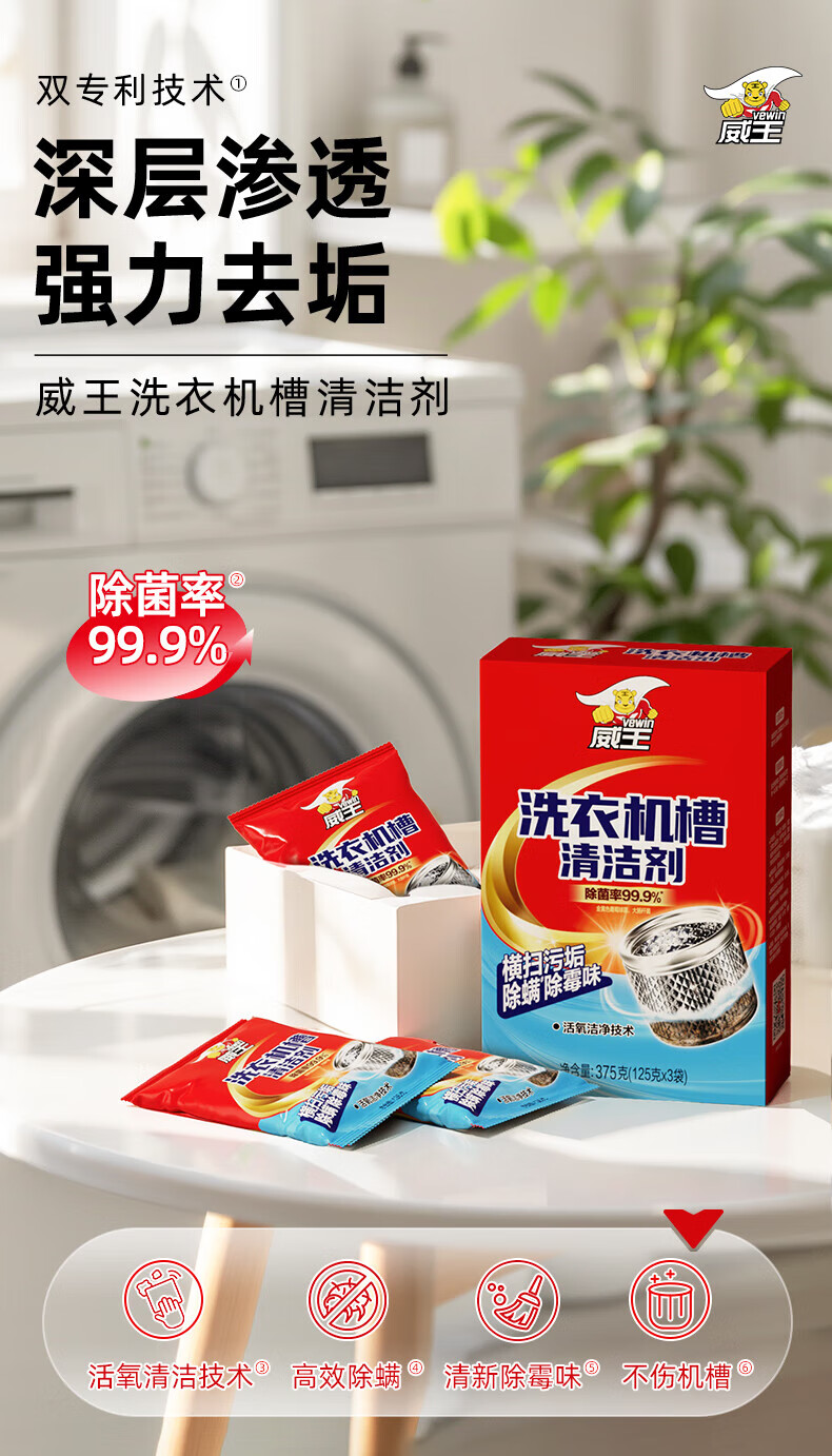 威王洗衣机清洗剂除菌除螨防异味波轮滚筒式洗衣机内胆除垢剂100g*5