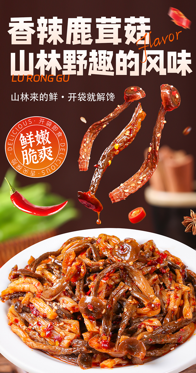 【5袋更超值❗️山椒/香辣味鹿茸菇】山林野趣的风味,甄选品质原料制作,香辣鲜脆开袋即食,清鲜里藏着巧「越嚼越有咸鲜」开袋即食办公休闲小吃下饭菜L-d