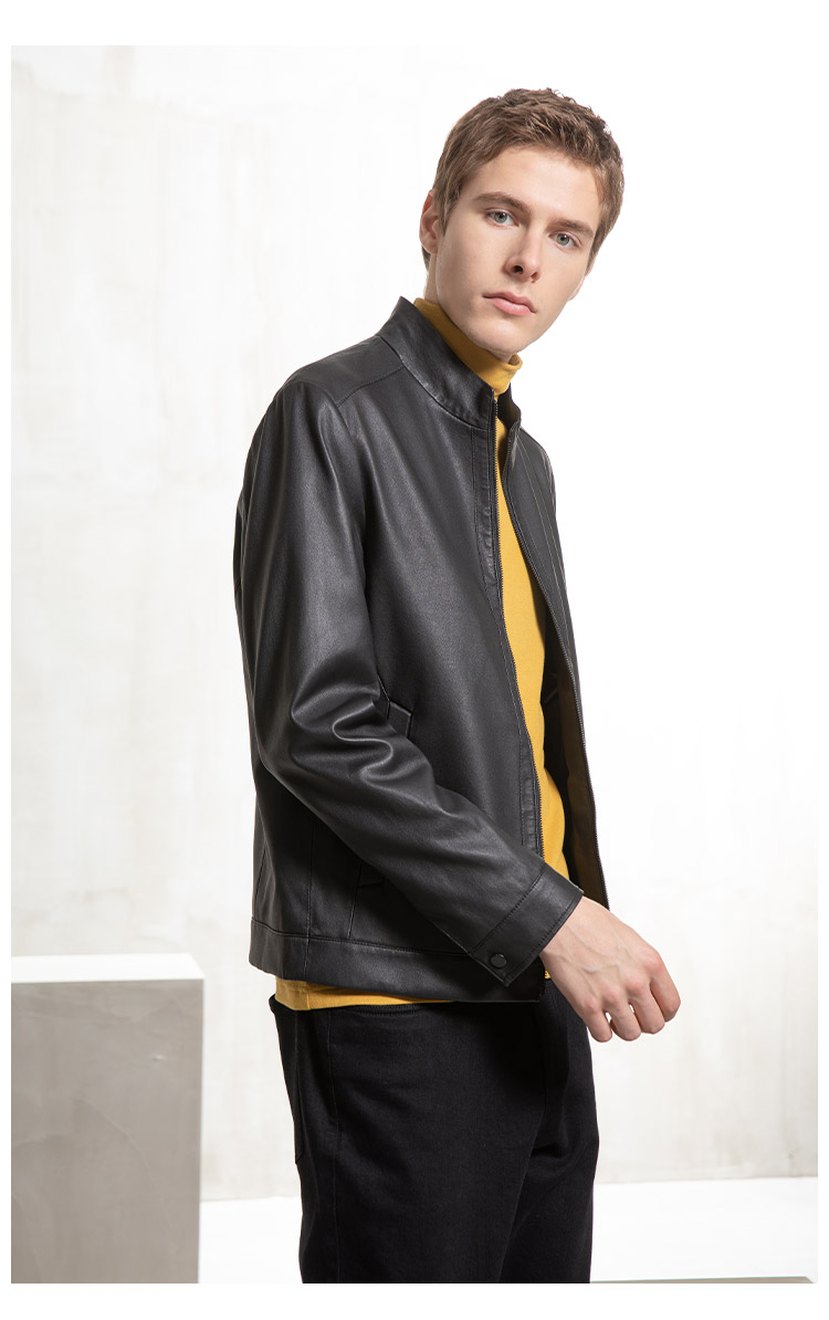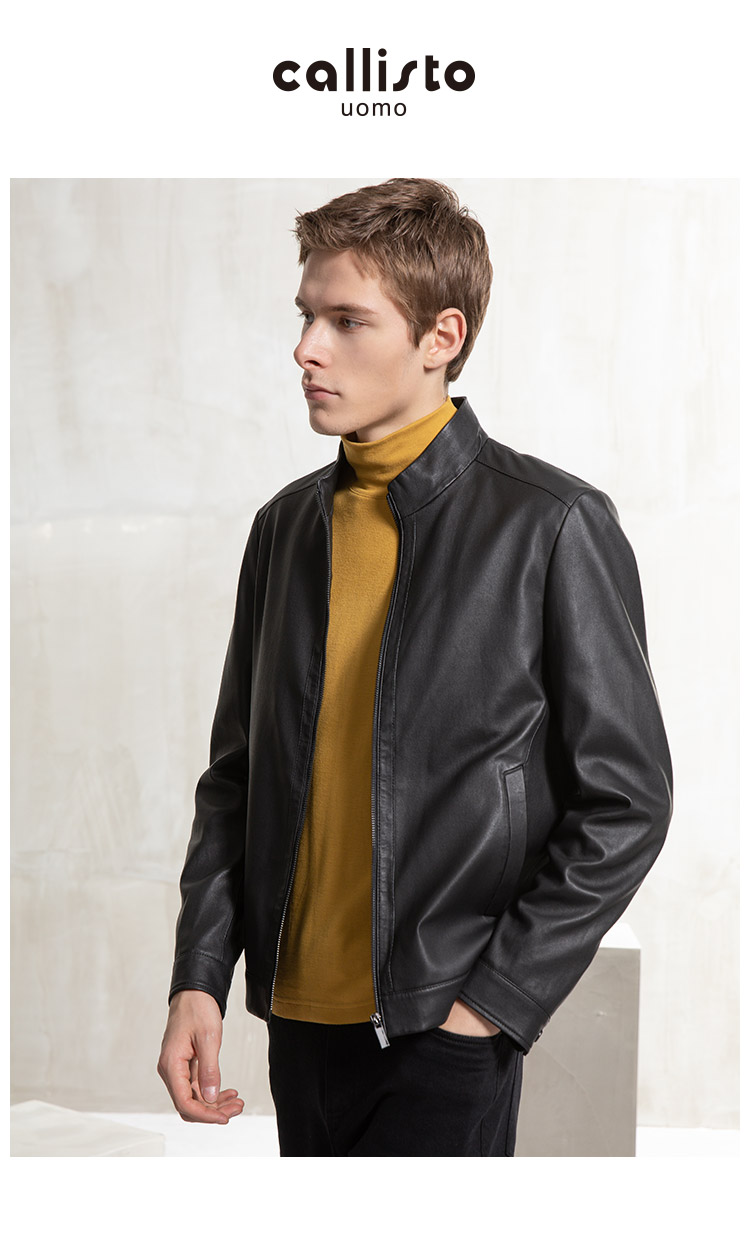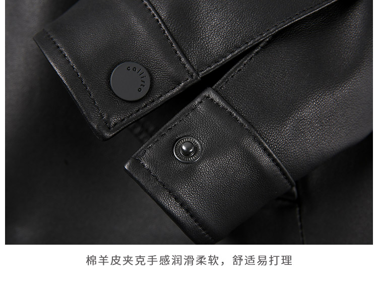 callisto黑色羊皮革皮夹克 FQFLT022C