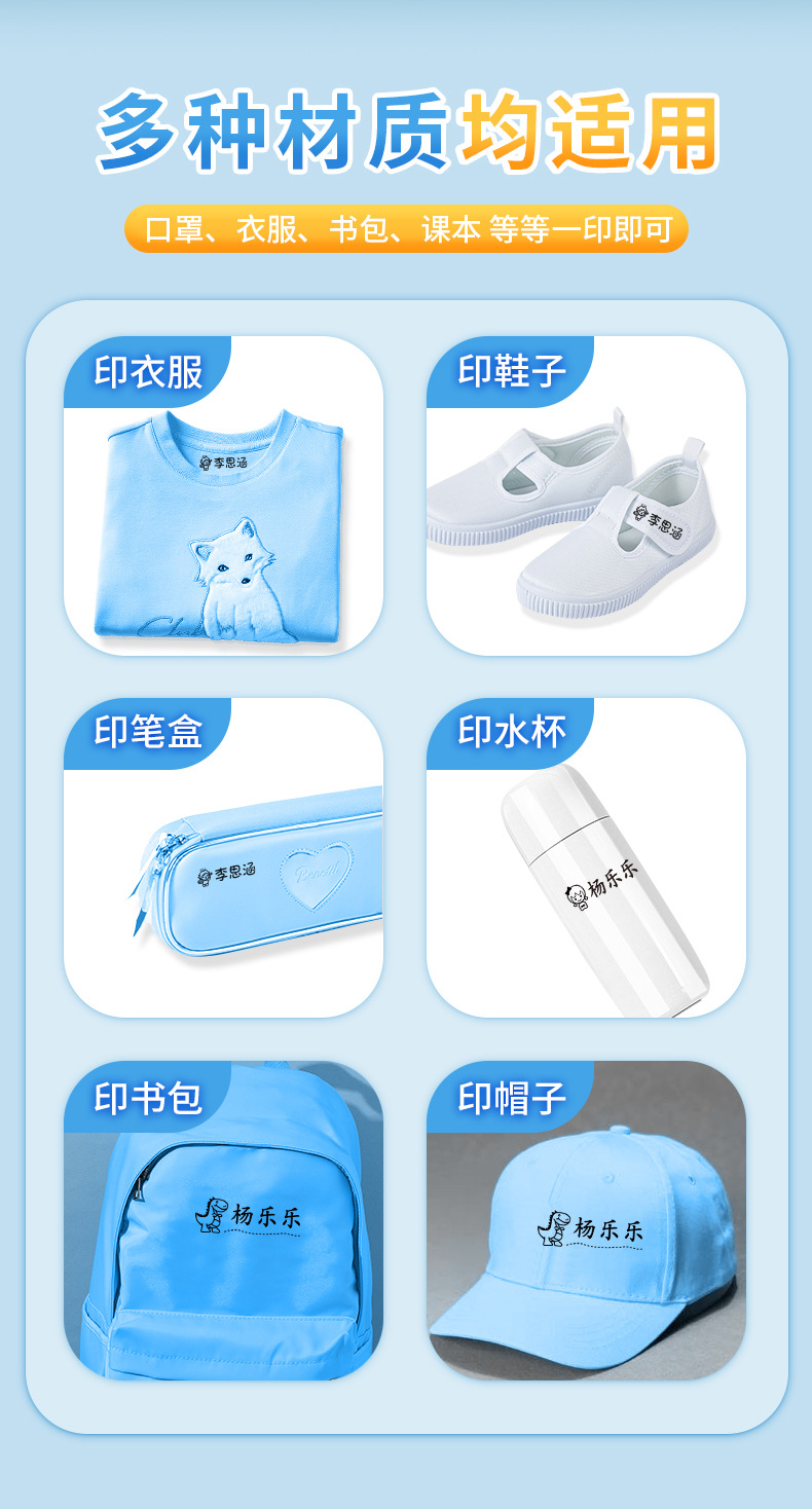 「DIY孩子名字印章」可爱印章儿童幼儿园名字居家日用印章蛋壳滴胶防水洗不掉色衣服