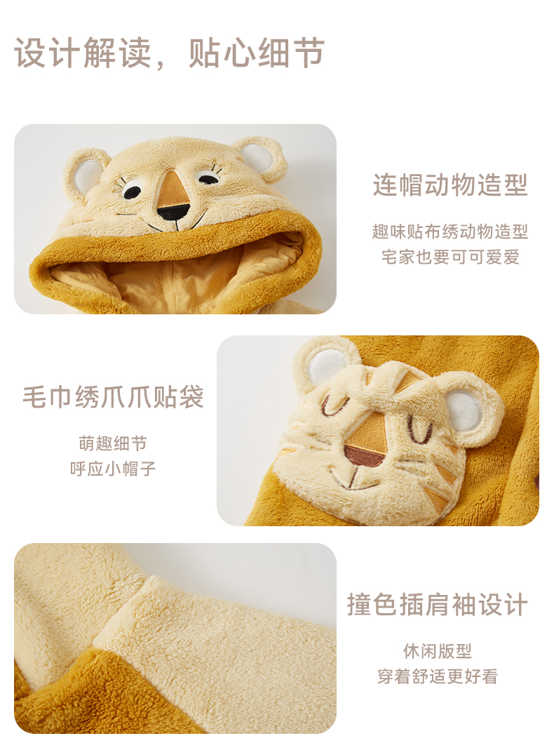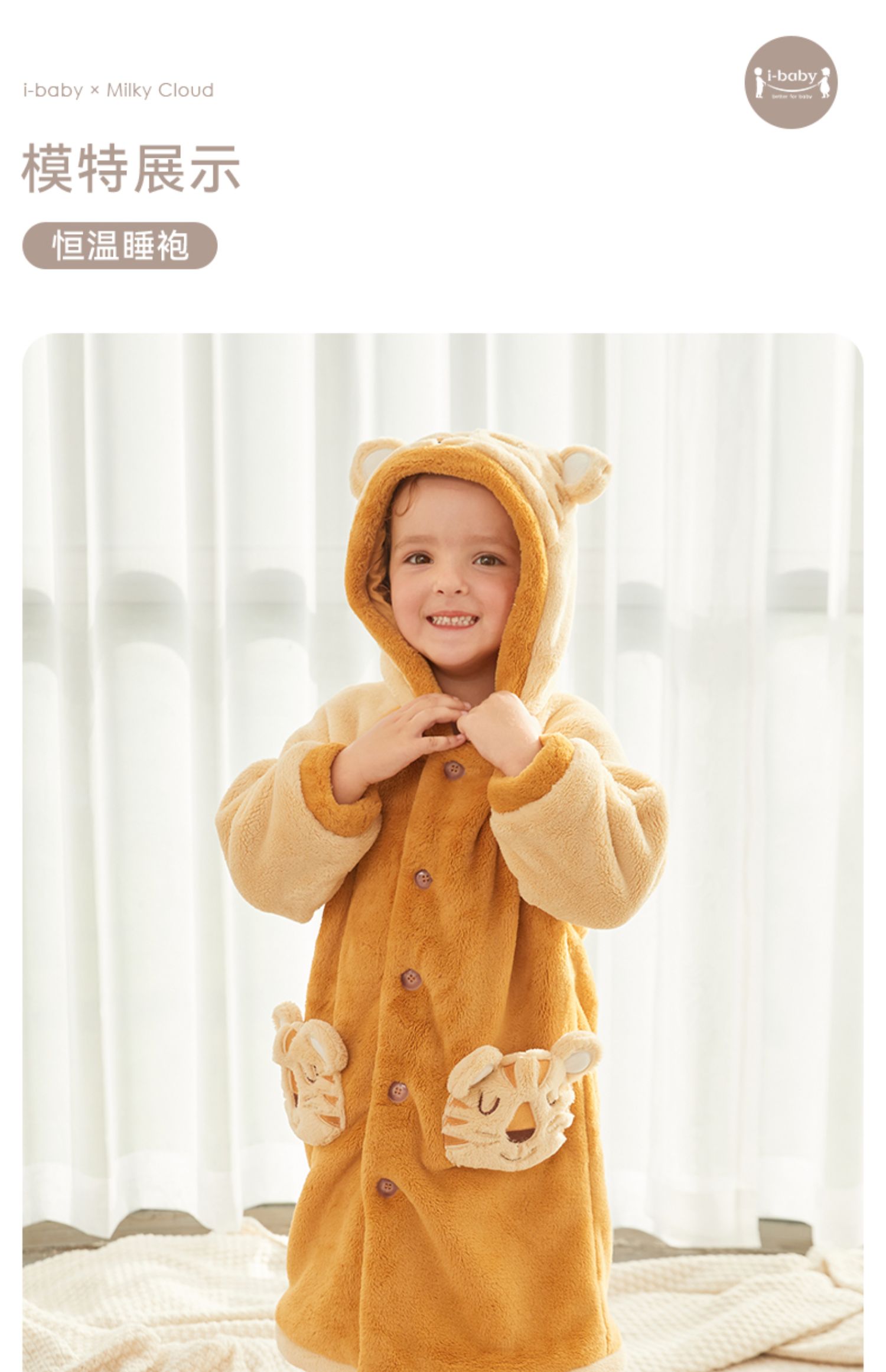【儿童款】i-baby牛奶绒恒温儿童家居服可爱造型睡袍保暖卡通全家亲子装套装