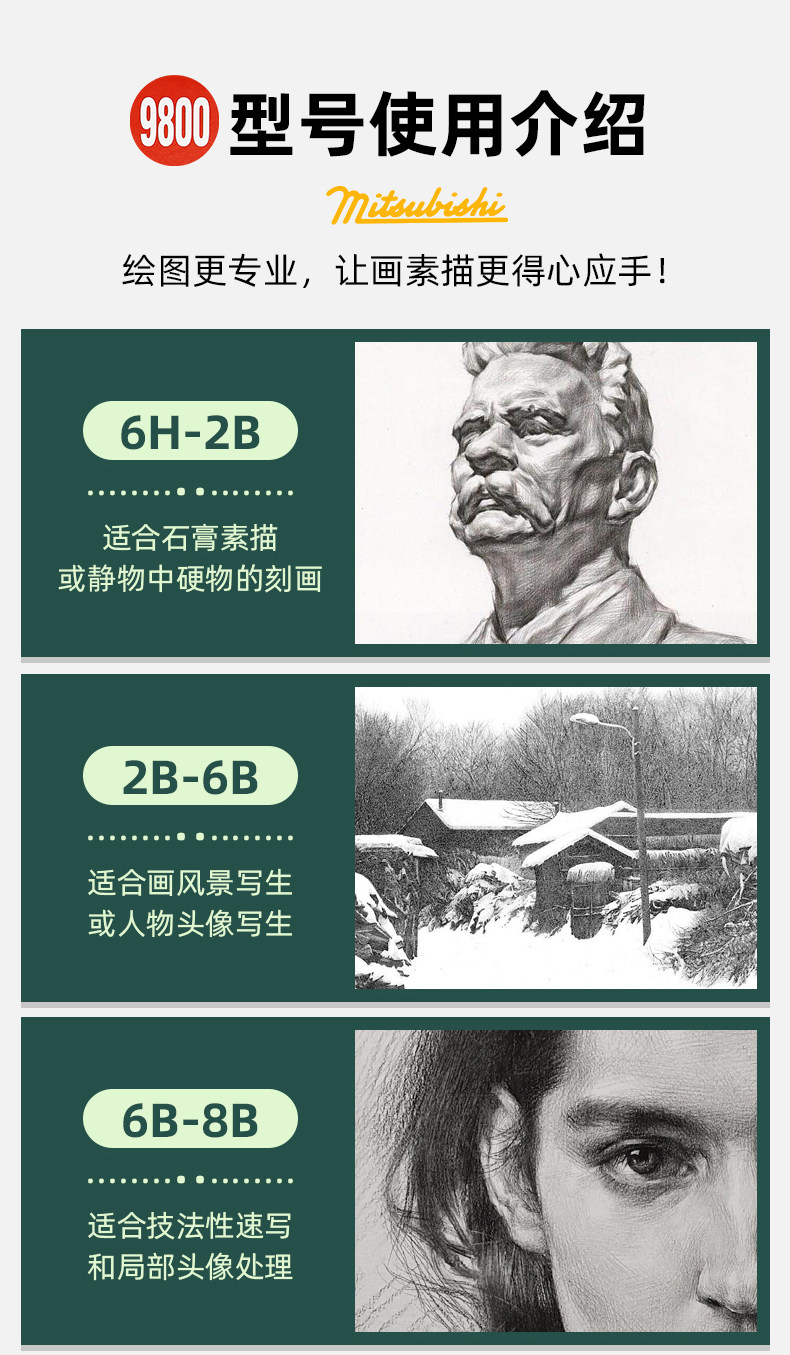 三菱铅笔9800素描铅笔