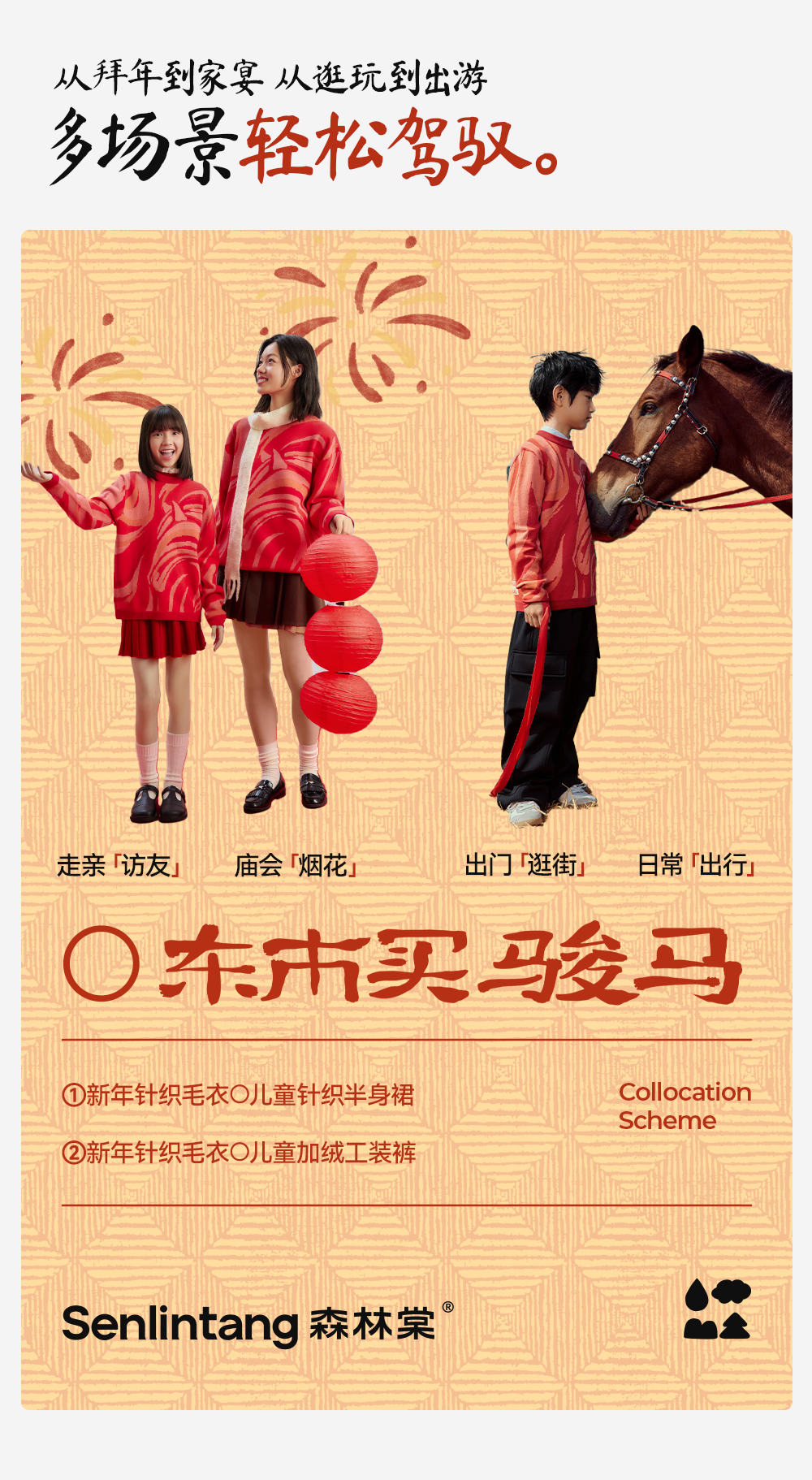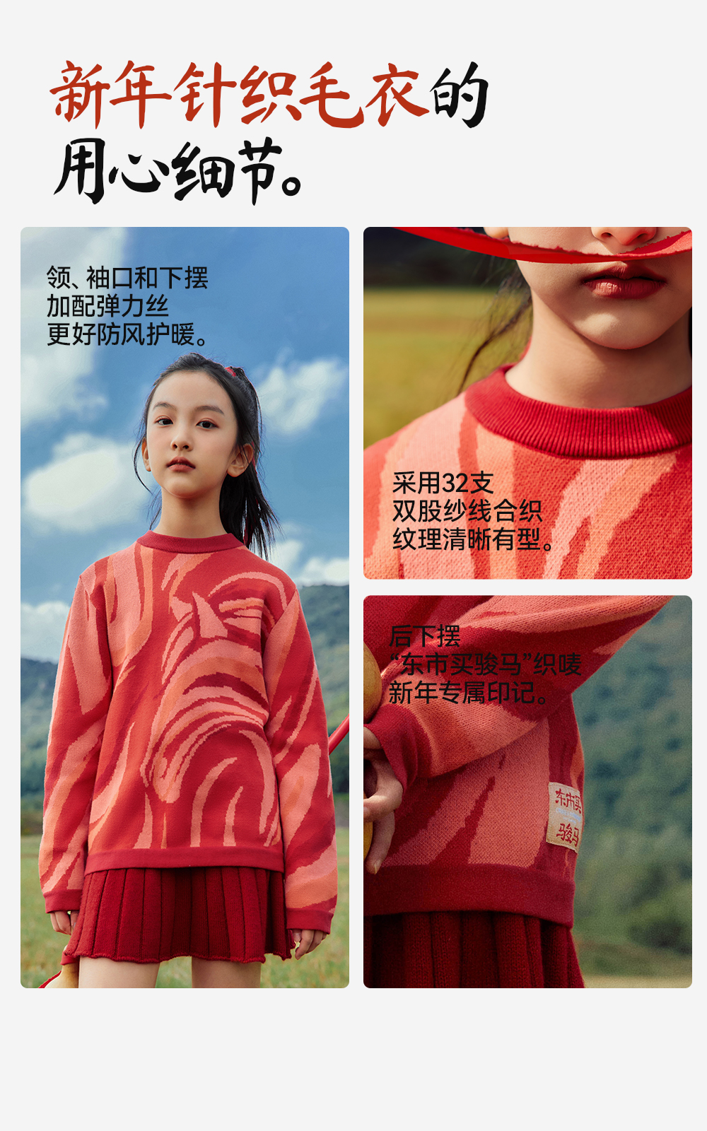 【新年款圆领针织毛衣】森林棠26新款儿童纯棉毛衣新年亲子毛衣20561013