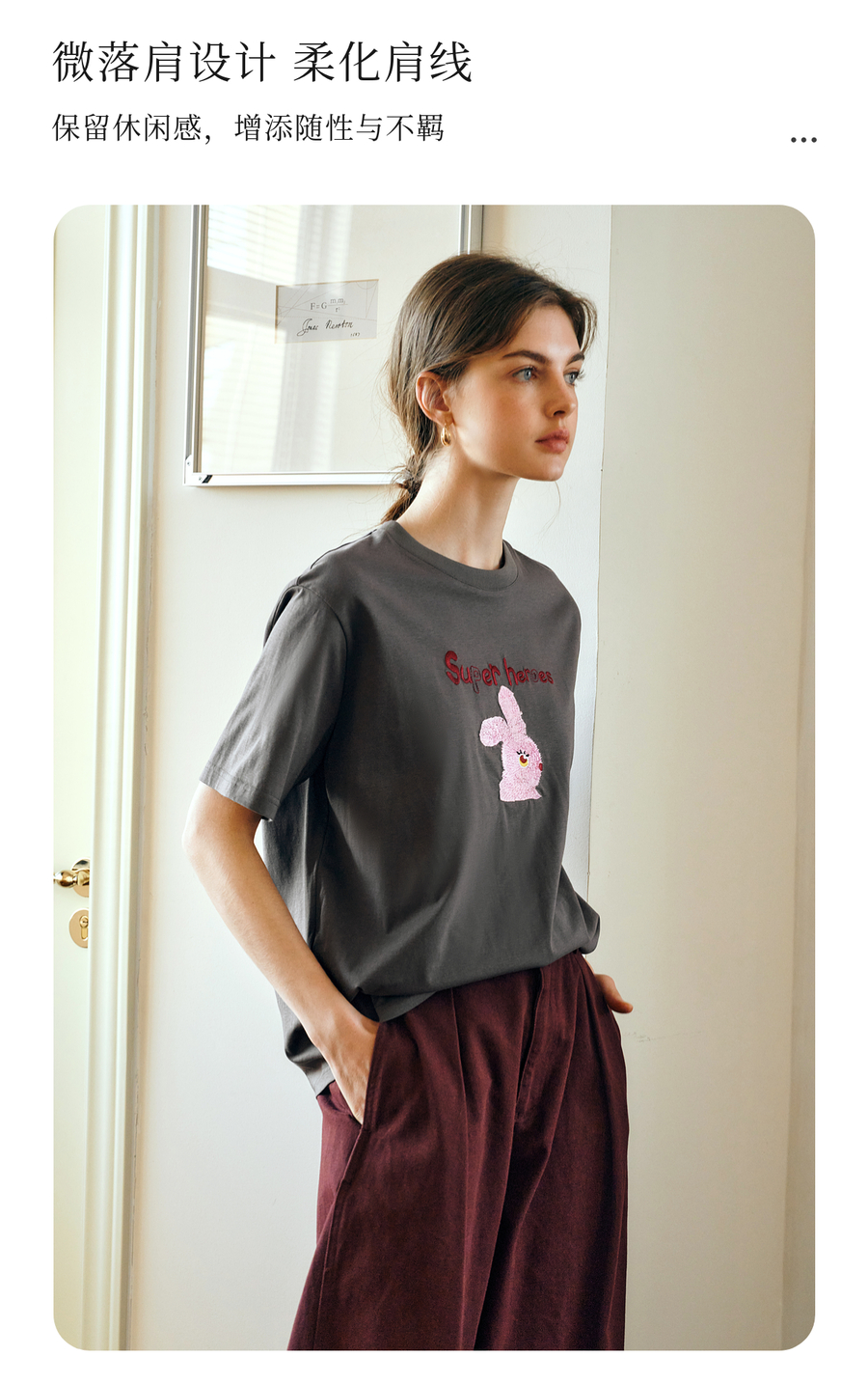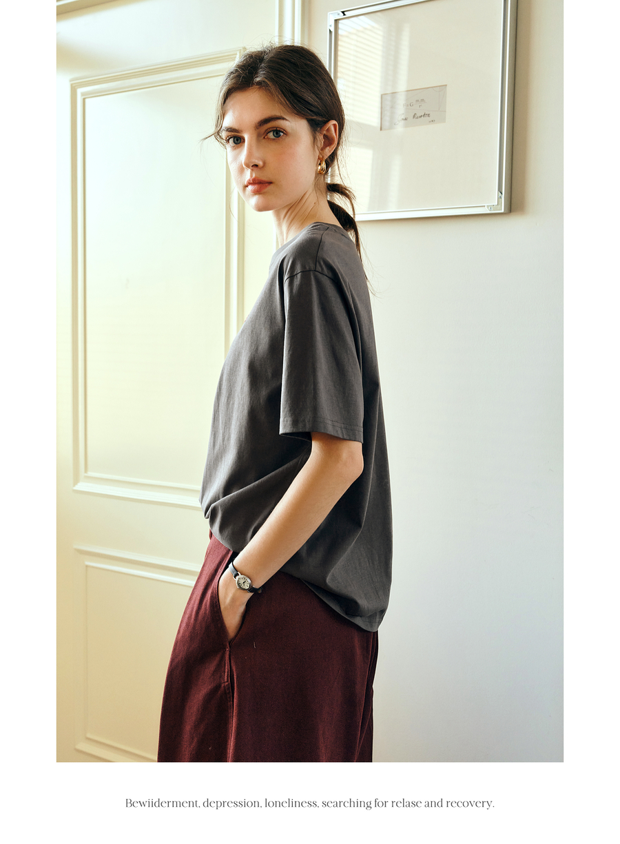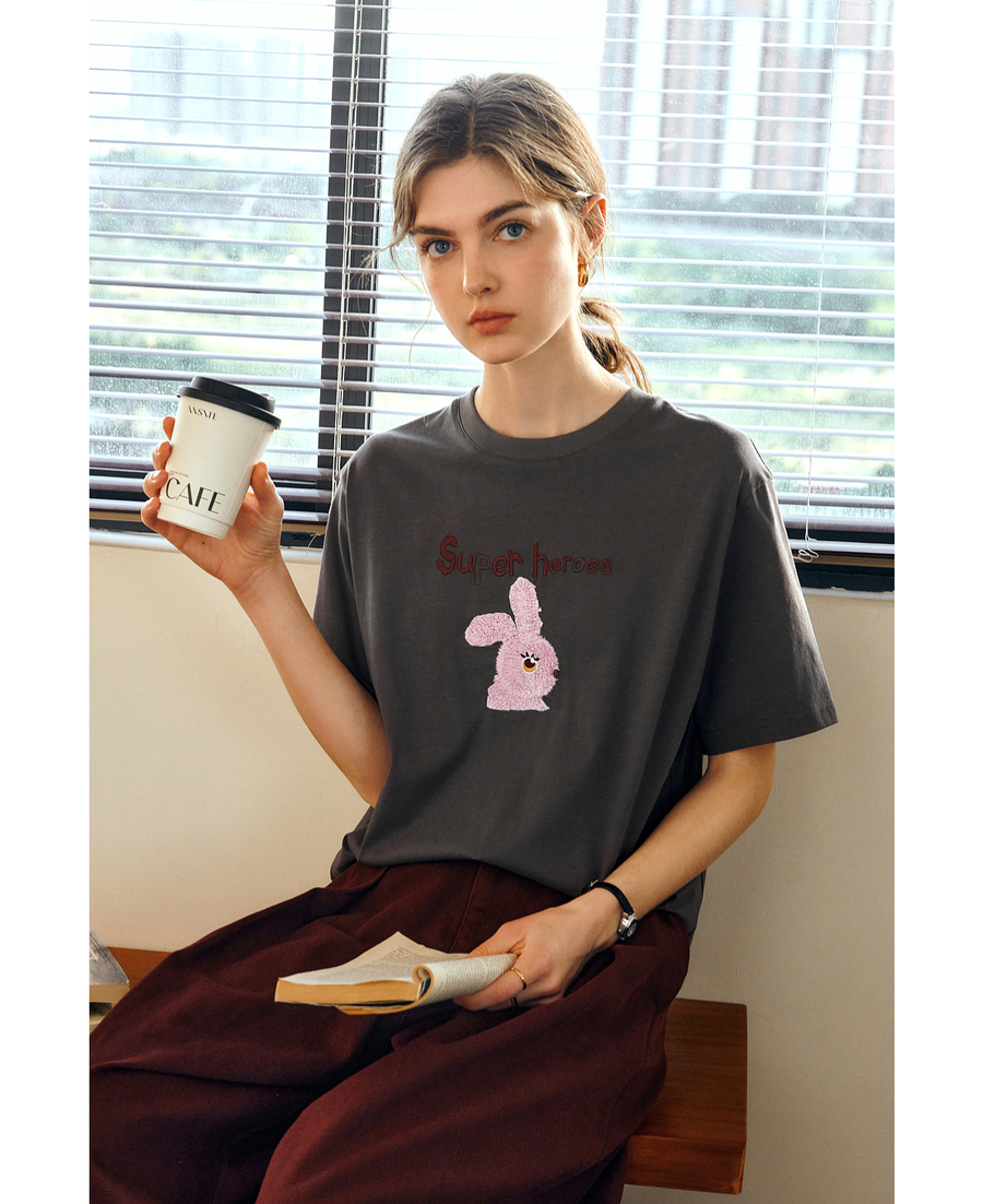 OLrain欧芮儿灰色短袖T恤女夏季2025年新款立体趣味宽松长袖上衣