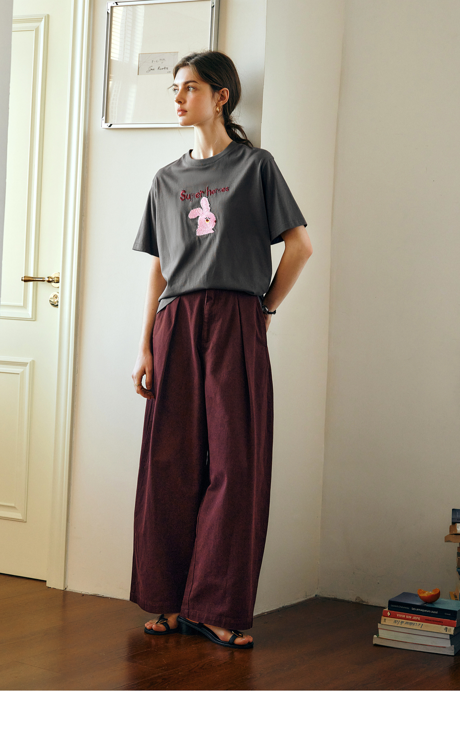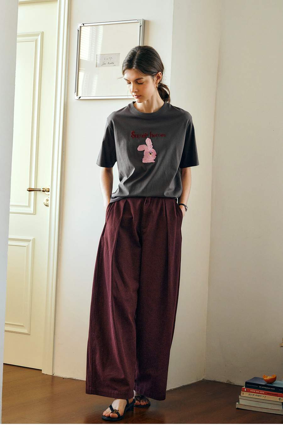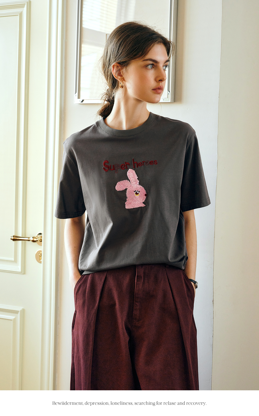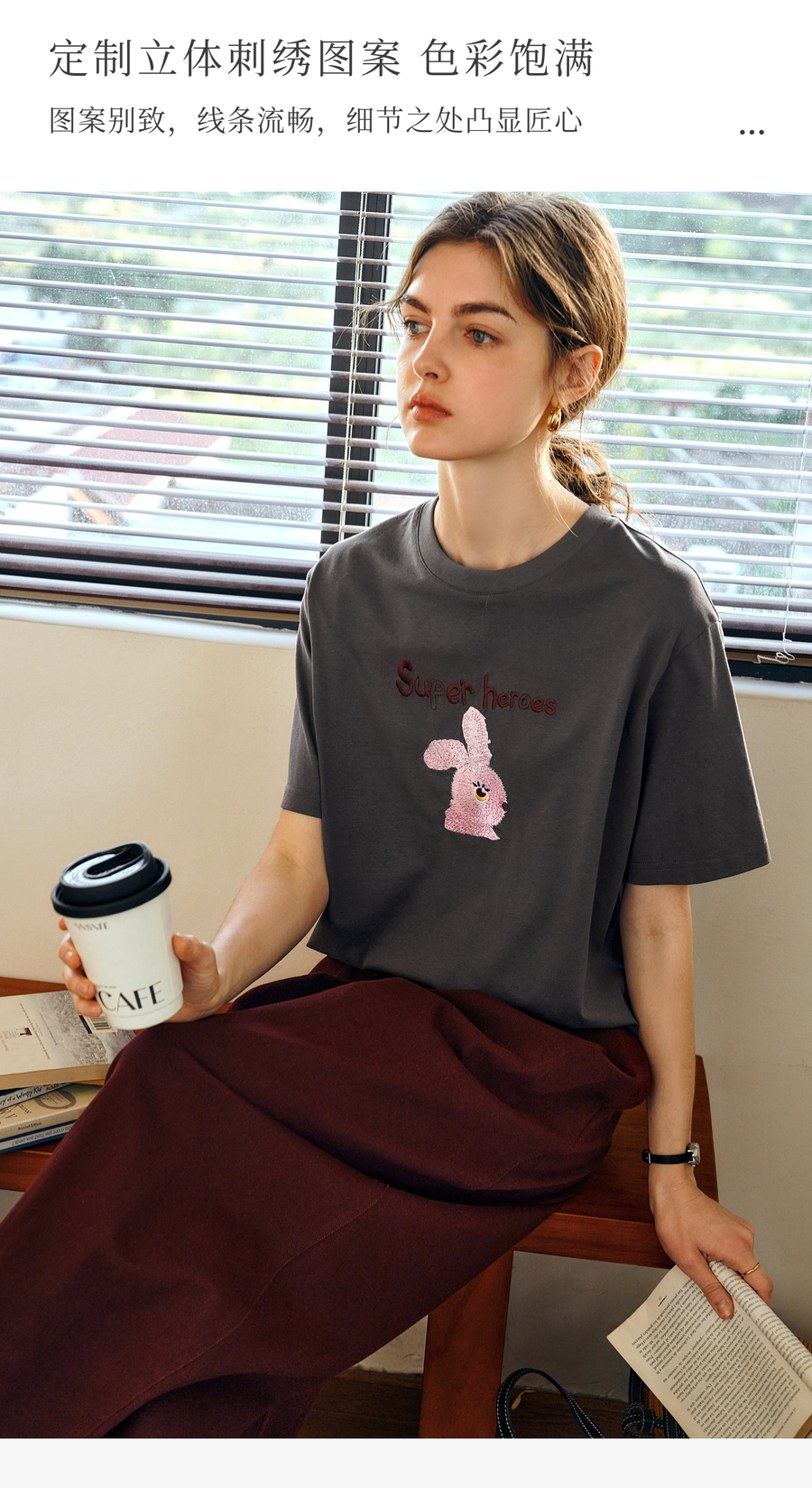 OLrain欧芮儿灰色短袖T恤女夏季2025年新款立体趣味宽松长袖上衣