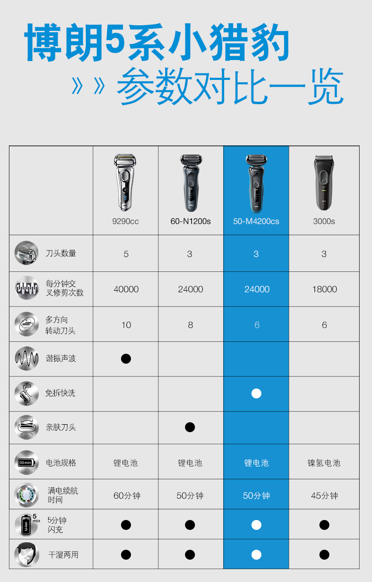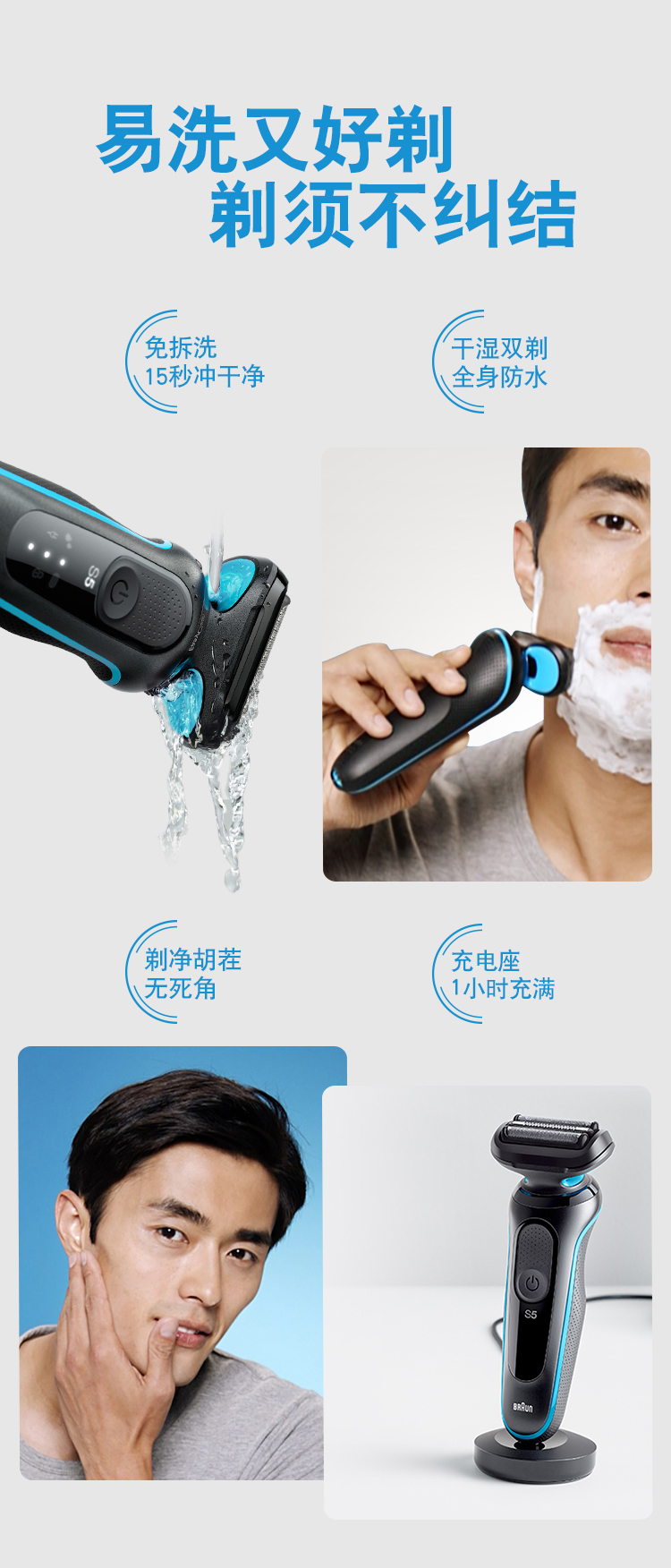 博朗 5系4200cs电动剃须刀蓝色配充电底座
