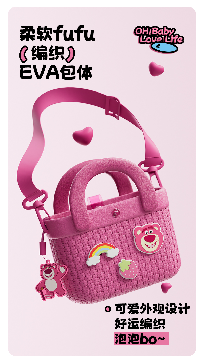 【赠公仔*1扣花*3】Koool科物酷非遗竹编包 草莓熊儿童手提斜挎包草莓熊 爱莎公主 零钱小包